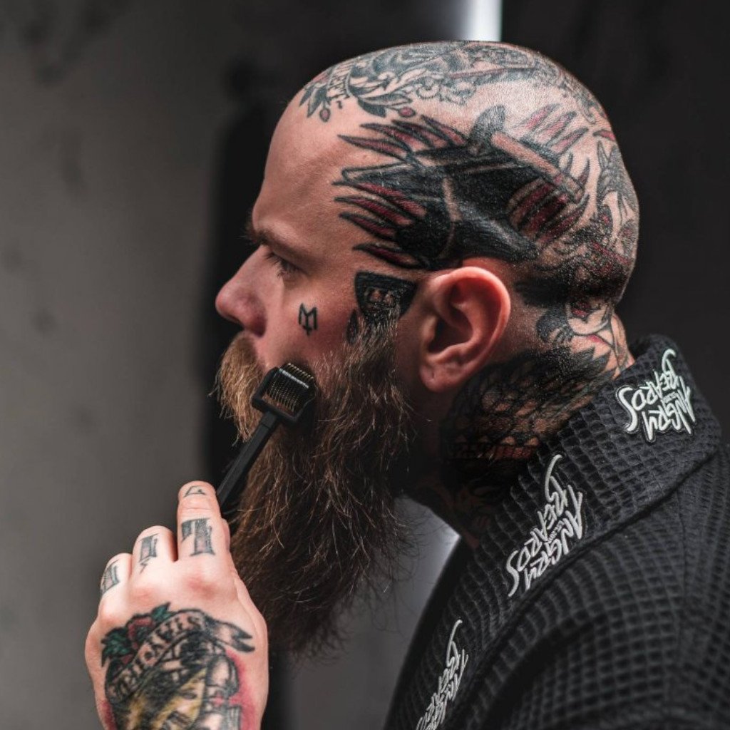Valček s 540 titánovými mikroihličkami s dĺžkou 0,5 mm prináša do vašej kúpeľne rastovú revolúciu. Beard Roller je takmer väčší profesionál v prieniku ako Johnny Sins. Preniká do vrchnej vrstvy pokožky, čo vedie k masívnemu prekrveniu, aktivácii prirodzeného procesu hojenia pokožky a v konečnom dôsledku k lepšiemu vstrebávaniu dopingu. Poslednou vecou, ktorú môžeme ponúknuť na rast, je Beardroids. Všetky sakumprdum dostanete v kompletnej súprave na podporu rastu.