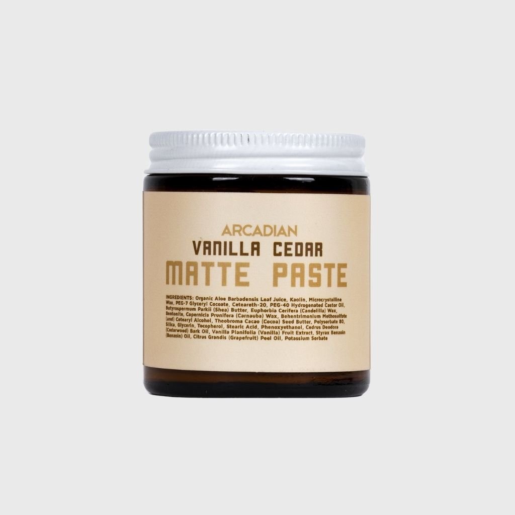 Arcadian Matte Paste. Veľmi obľúbená pasta na vlasy z veľkej ARCADIAN GROOMING. Teraz vo variante Vanilla Cedar - vôňa vanilky a cédrového dreva.