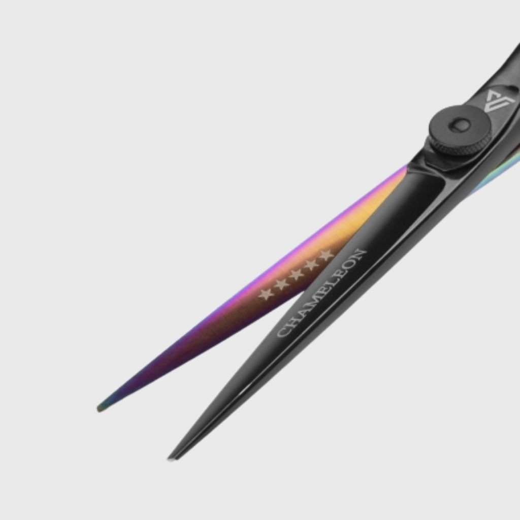Nožnice CHAMELEON sú potiahnuté titánovou vrstvou, vďaka ktorej sú krásne a mimoriadne odolné. Presný mechanizmus, ktorý účinne reguluje silu nožníc. Každý pár je uložený v elegantnom ochrannom puzdre a obsahuje fľašu oleja a kefku na údržbu.