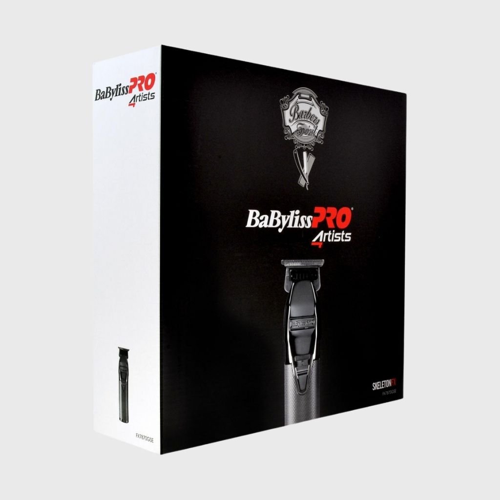 Profesionálny kontúrovací strojček Babyliss PRO Skeleton FX v GunSteel farbe. Stroj je vybavený technológiou EDM, t. j. elektronickým digitálnym motorom inšpirovaným značkou Ferrari (rýchlosť 7200 ot./min.) a hlavou s výškou rezu 0,1 mm a šírkou 41 mm. Titánová 40 mm čepeľ DLC/T s nulovou medzerou. Nemá kryt, ktorý by udržiaval teplo, takže sa toľko nerozpáli. Ideálny na zastrihávanie a kreatívny styling, tiež na presné tvarovanie krku a fúzov.