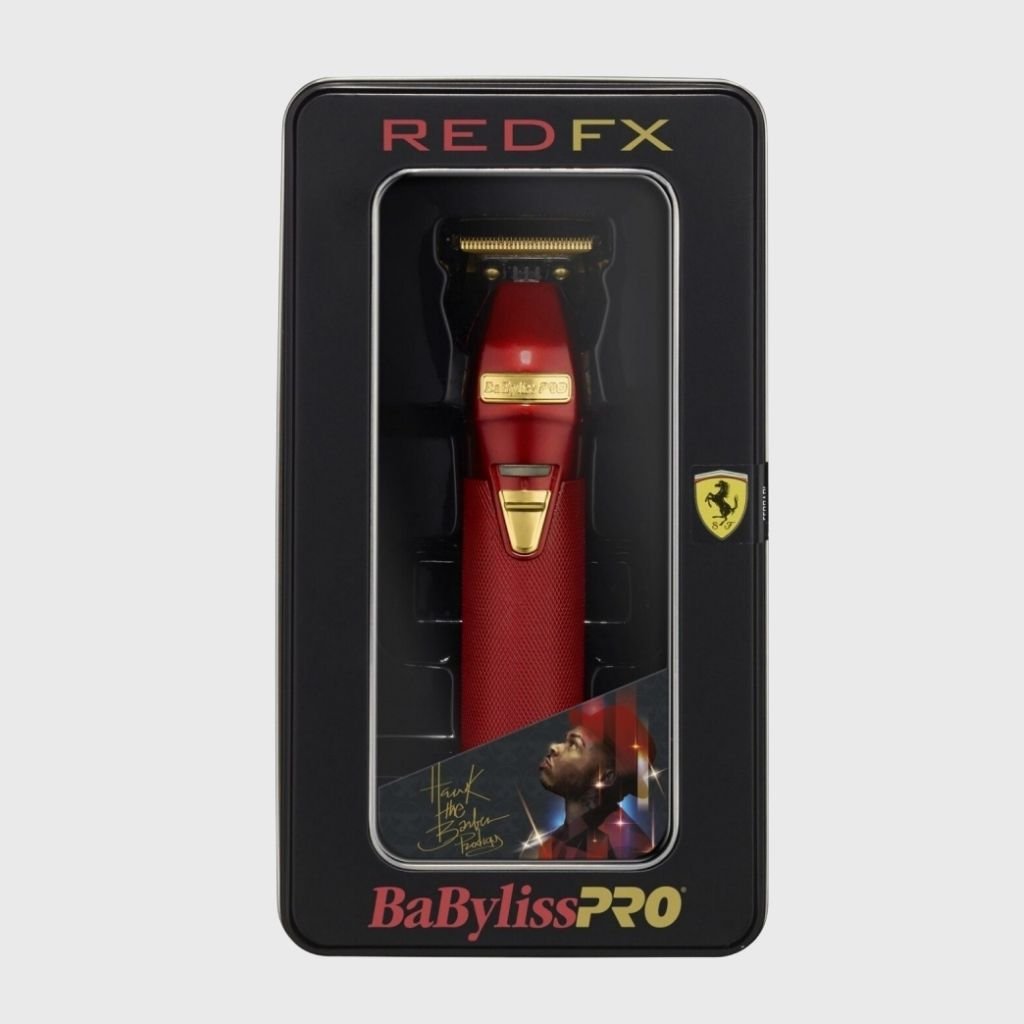 Profesionálny kontúrovací strojček Babyliss PRO Skeleton FX Red v červenej farbe so zlatými doplnkami. Stroj je vybavený technológiou EDM, t. j. elektronickým digitálnym motorom inšpirovaným značkou Ferrari (rýchlosť 7200 ot./min.) a hlavou s výškou rezu 0,1 mm a šírkou 41 mm. Titánová 40 mm čepeľ DLC/T s nulovou medzerou. Nemá kryt, ktorý by udržiaval teplo, takže sa toľko nerozpáli. Ideálny na zastrihávanie a kreatívny styling, tiež na presné tvarovanie krku a fúzov.