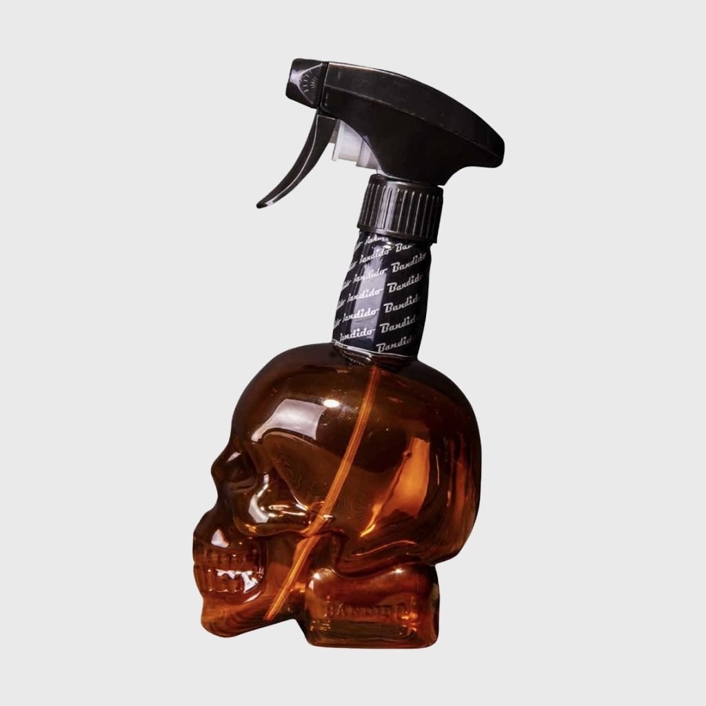 Vodný rozprašovač BANDIDO je vysokokvalitný a plne nastaviteľný vodný rozprašovač určený pre kaderníctva alebo kadernícke salóny na hydratáciu vlasov. Rozprašovač má pútavý dizajn v tvare lebky. Nádoba má jantárovú farbu a objem 500 ml.