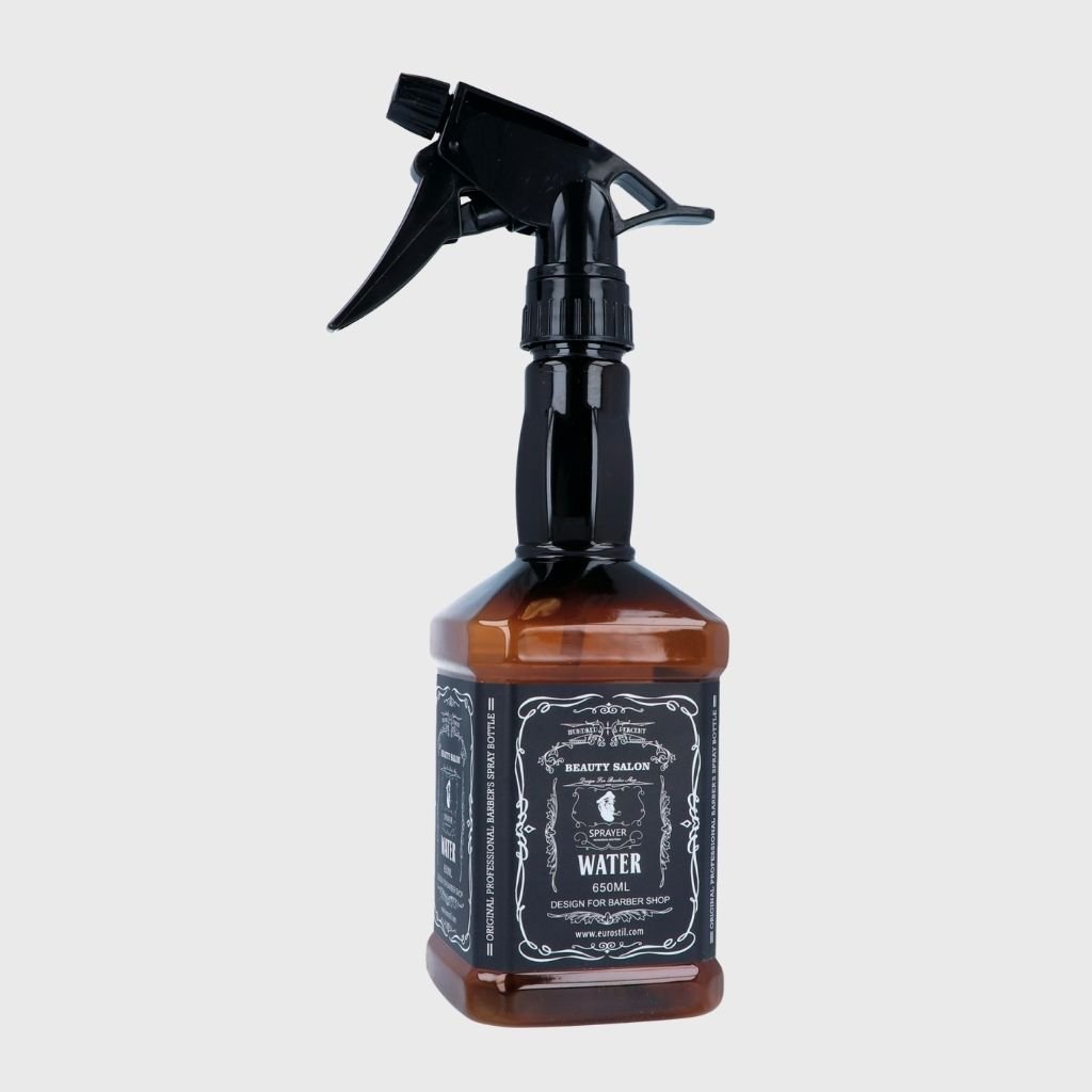 Fľaša s rozprašovačom vody s objemom 650 ml. Dizajn v štýle Jack Daniels bude vyzerať skvele v každom holičstve.