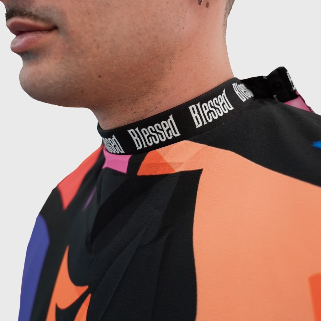 Profesionálna holičská pláštenka Blessed Slick Spades Barber Cape s neoprénovým golierom, ktorý ponúka skvelé pohodlie a zabraňuje vnikaniu chĺpkov pod pláštenku.