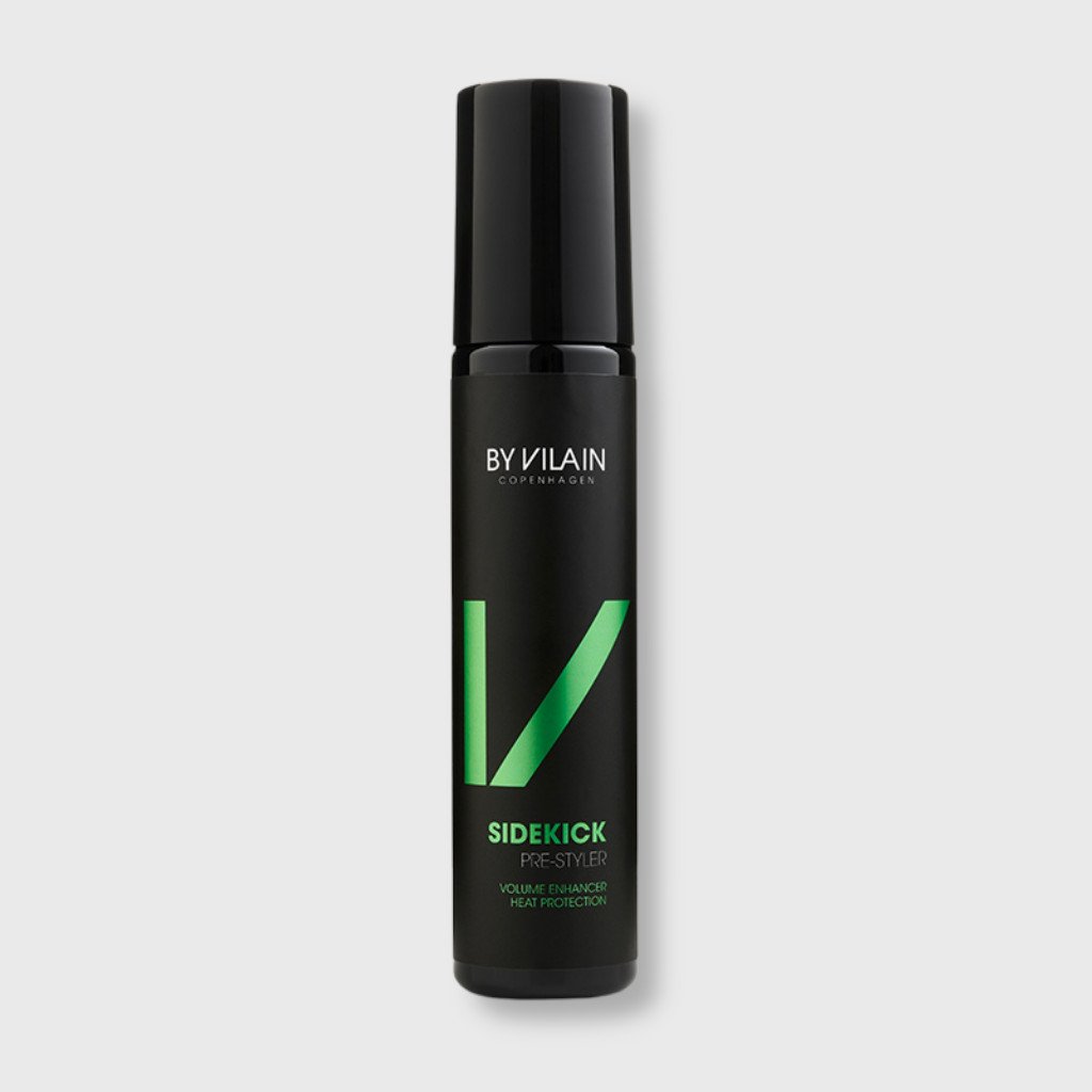 By Vilain Sidekick. Profesionální pre-stylingový sprej s termoprotekcí až do 150°C. Dokonale tak ochrání vlasy před horkým vzduchem fénu a připraví vaše vlasy pro další styling. Poskytuje vlasům přirozený lesk a umožňuje vytvořit požadovaný styl účesu.