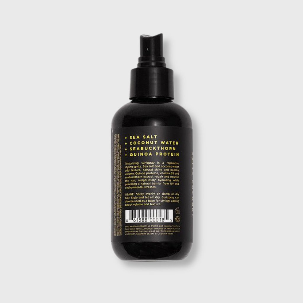 Byrd Texturizing Surfspray od kalifornskej surfersko-kozmetickej značky pre vlasy a vlasový styling - BYRD. Morská soľ a kokosová voda dodávajú vlasom textúru, prirodzený lesk a plážový objem. Proteíny z quinoy, vitamín B5 a výťažok z rakytníka obnovujú a vyživujú vlasy, bez zaťaženia ich hydratujú a poskytujú prirodzenú bariéru proti UV žiareniu a vplyvom prostredia.