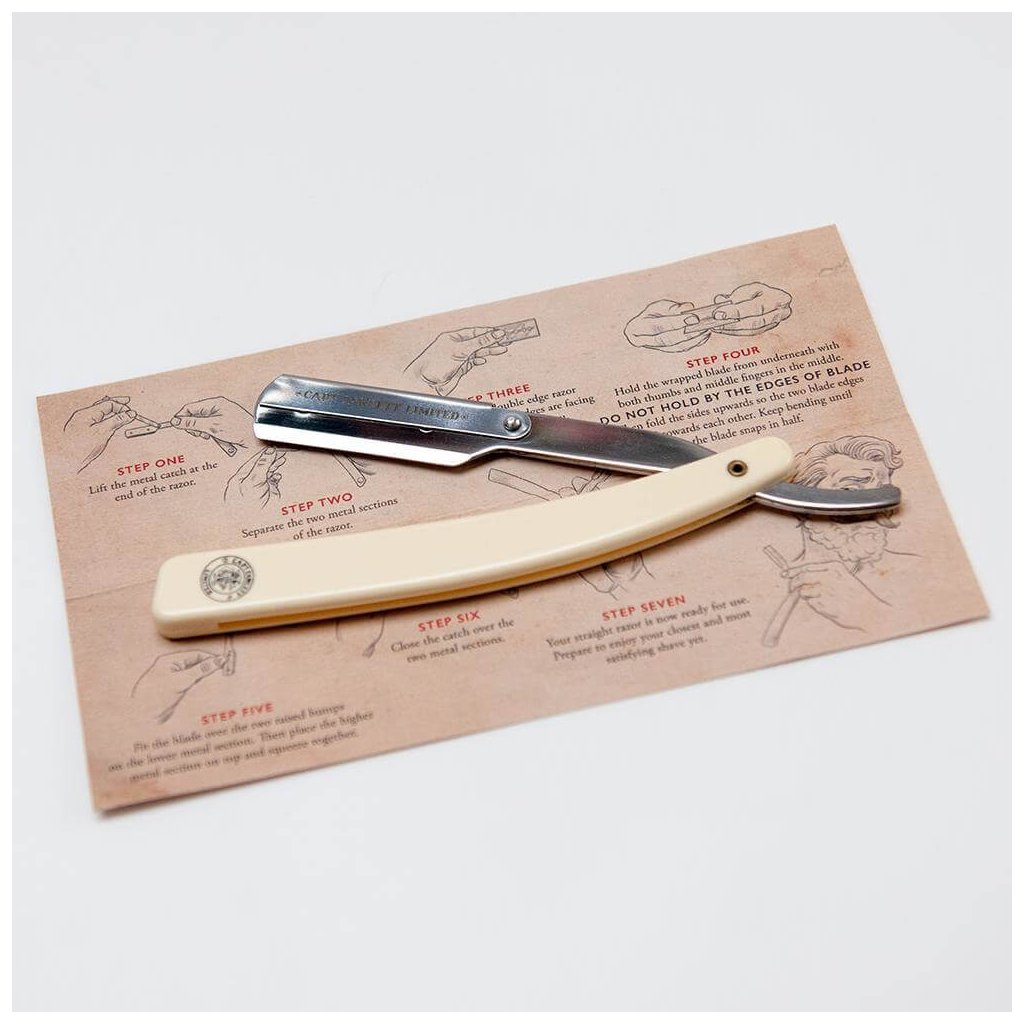 Veľmi kvalitne spracovaná shavetta od anglickej značky Captain Fawcett je určená fanúšikom tradičného mokrého holenia. Úplne otvorená shavetta je dlhá 21 cm, rukoväť je plastová. Vhodný na profesionálne aj domáce použitie. Žiletky nie sú súčasťou balenia. Dodáva sa v darčekovej škatuľke. Súčasťou balenia nie sú žiletky. Je nutné ich dokúpiť.