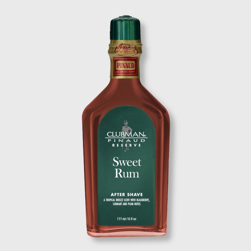 Voda po holení Sweet Rum (177 ml) od značky Clubman má veľmi príjemnú vôňu sladkého rumu v kombinácii s tónmi čiernych ríbezlí, černíc, sliviek, marche a kadidla. Po holení osviežuje, uzatvára póry, upokojuje pokožku a pomáha rýchlejšie hojiť drobné ranky spôsobené holením. Vyrobené v USA.