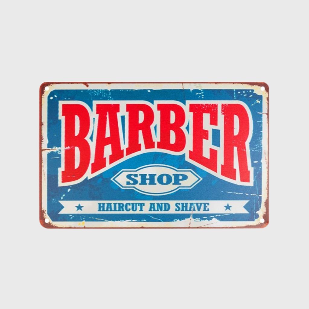 Dekoratívna ceduľka do barbershopu Barber Shop Haircut & Shave
