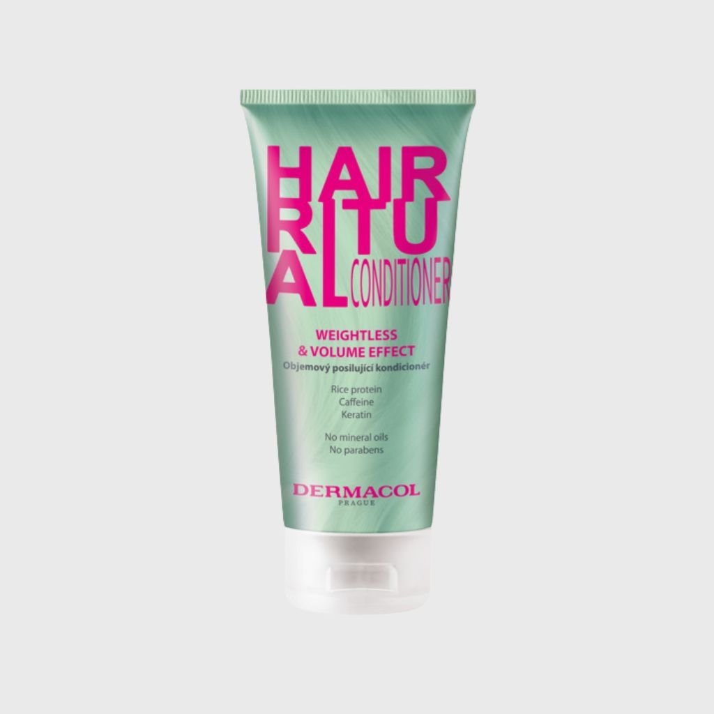 Dermacol Hair Ritual kondicionér pre objem vlasov je posilňujúci kondicionér s keratínom a ryžovým proteínom zaisťuje vlasom silu, objem a žiarivý lesk. Absorbuje prebytočnú mastnotu, čo pomáha vlasom udržať si objem. Prípravok s kofeínom, vitamínom B3, makadamiovým olejom a bambuckým maslom regeneruje a vyživuje vlasové vlákna, zvyšuje ich odolnosť a chráni ich pred vonkajšími vplyvmi. Panthenol obnovuje potrebnú hydratáciu suchých a strapatých vlasov, uľahčuje rozčesávanie a zanecháva vlasy lesklé bez zaťaženia. Vhodné pre všetky typy pleti.