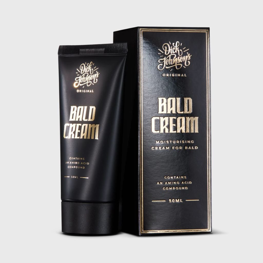 Dick Johnson Bald Cream je ošetrujúci krém na plešatú pokožku hlavy. Obsahuje zlúčeninu aminokyselín, ktorá sa stará o pokožku hlavy a dodáva jej energiu a intenzívnu hydratáciu. Odporúčame používať krém každý deň. Krém bude pôsobiť aj ako bariéra na pokožke, ak ho nanesiete pred holením žiletkou. Hydratácia pokožky hlavy vedie k menšiemu množstvu lupín, menšiemu vysušovaniu pokožky hlavy a menším známkam starnutia, čo dodáva pokožke zdravý vzhľad.