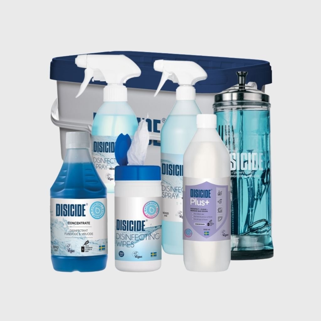 Disicide Štart Set White sada dezinfekčných prostriedkov. Ideálny na použitie na dezinfekciu v kaderníctvach.