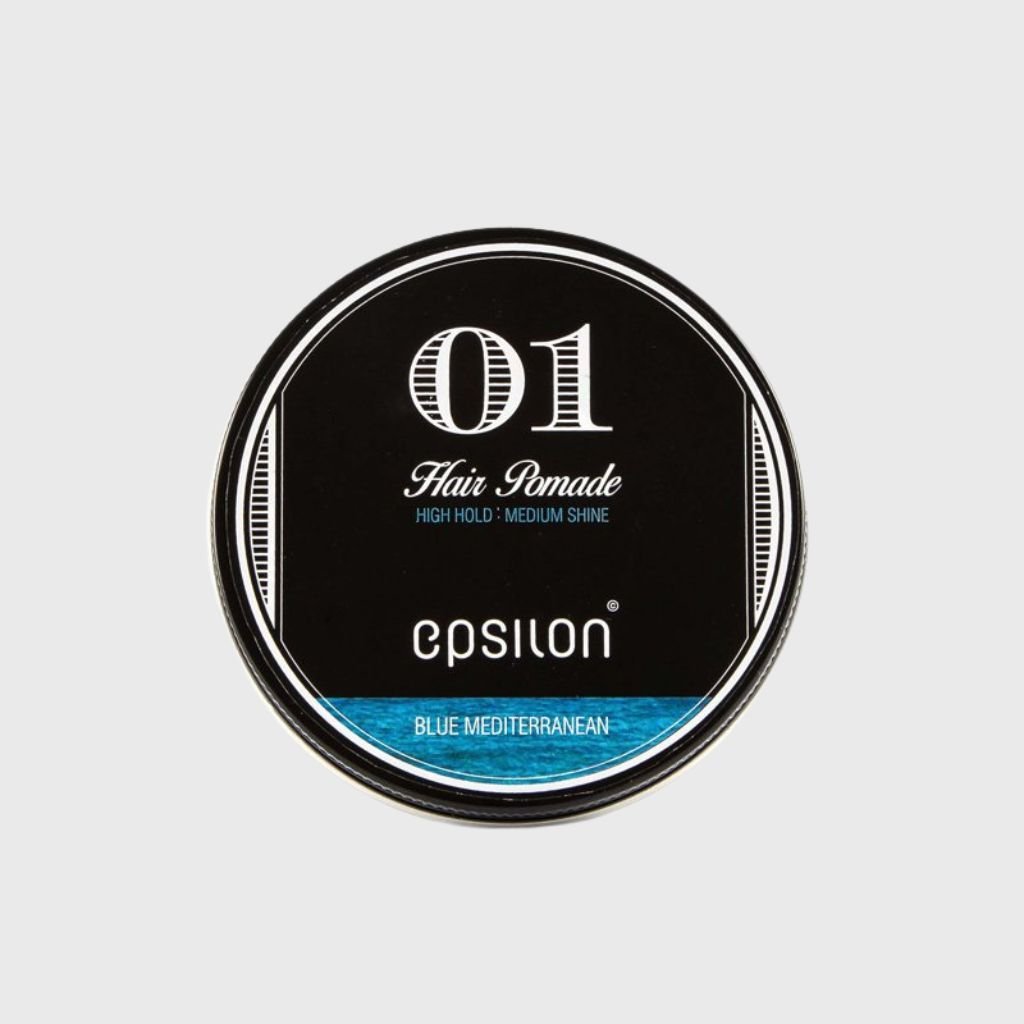 Pomáda na vlasy Epsilon 01 Blue Mediterranean. Pomáda na vlasy, ktorá je špeciálne vyvinutá z vysoko kvalitných zložiek a poskytuje silnú fixáciu so stredne lesklým povrchom.
