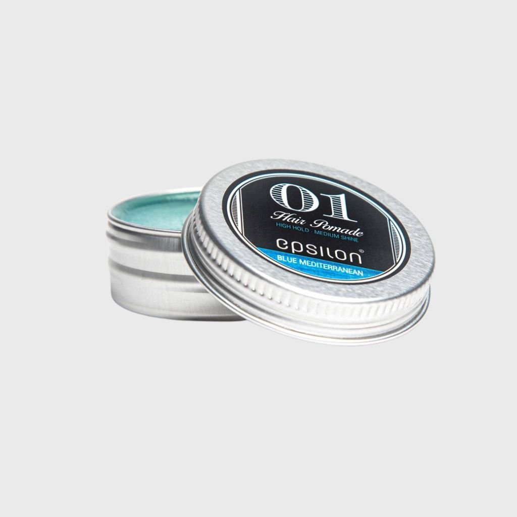 Pomáda na vlasy Epsilon 01 Blue Mediterranean. Pomáda na vlasy, ktorá je špeciálne vyvinutá z vysoko kvalitných zložiek a poskytuje silnú fixáciu so stredne lesklým povrchom.