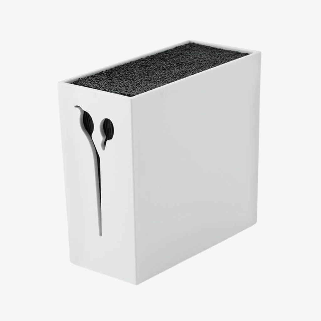 Stojan na nožnice na pohodlné skladovanie. Silné nylonové štetiny chránia nožnice a zabraňujú ich poškodeniu a poškriabaniu.
