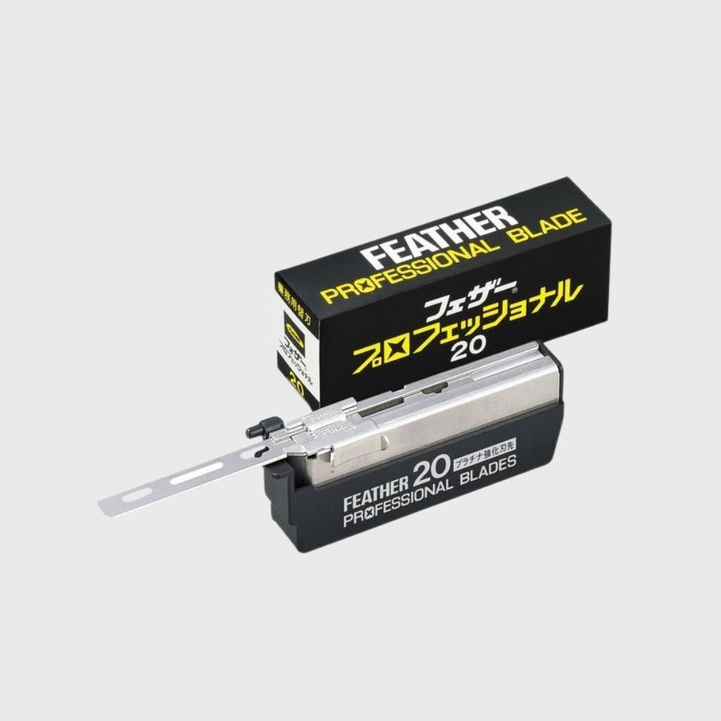 Profesionálne náhradné brity PB-20, hrúbky 0.254 mm, vhodné do všetkých britev na žiletky modelového radu Feather Artist Club. Čepele PB-20 majú väčší záber čepele približne 1 mm a sú vhodné pre všetky typy fúzov.