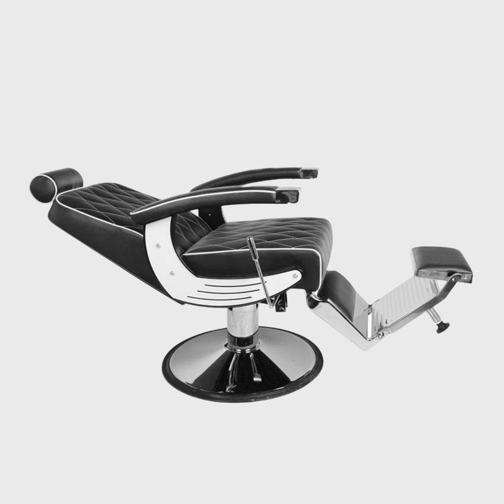 Holičské kreslo IMPERIAL. Je to moderný, dokonale spracovaný kúsok, ktorý poskytuje klientovi salónu maximálny pocit pohodlia počas vykonávaných procedúr. Okrem nastavenia nahor a nadol má stolička polohovateľné operadlo a nastaviteľnú opierku nôh.