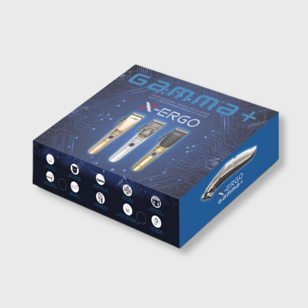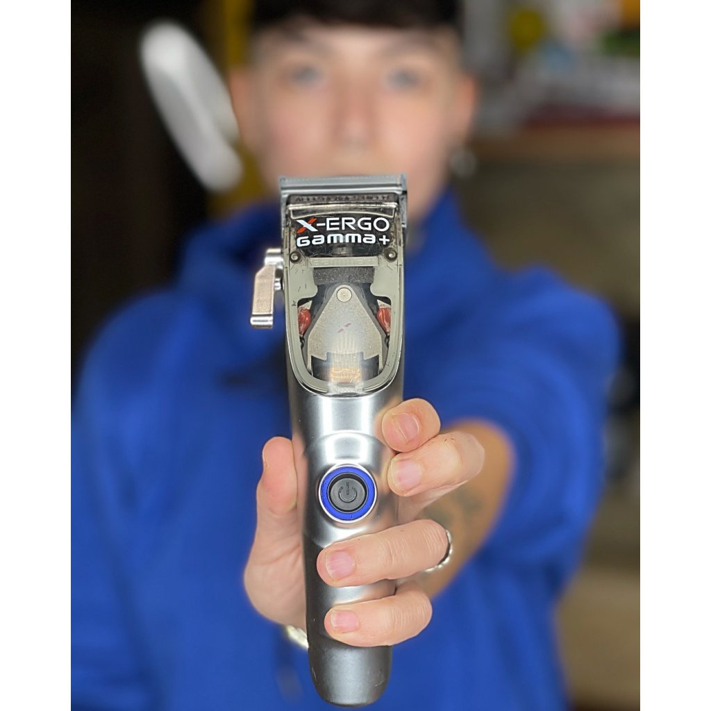 Profesionálny zastrihávač X-Ergo od Gamma Piú so silným magnetickým motorom s 10 000 ot./min a mikročipom pre vzrast krútiaceho momentu a výkonu. 45 mm „Taper“ čepeľ DLC Black Diamond Carbon s možnosťou nulovej medzery na dokončenie fadu. 3 možnosti nastavenia páky - 2 pre systém click a 1 pre freestyle. Lítiová batéria s výdržou 120 minút a rýchlym nabíjaním (105 minút).