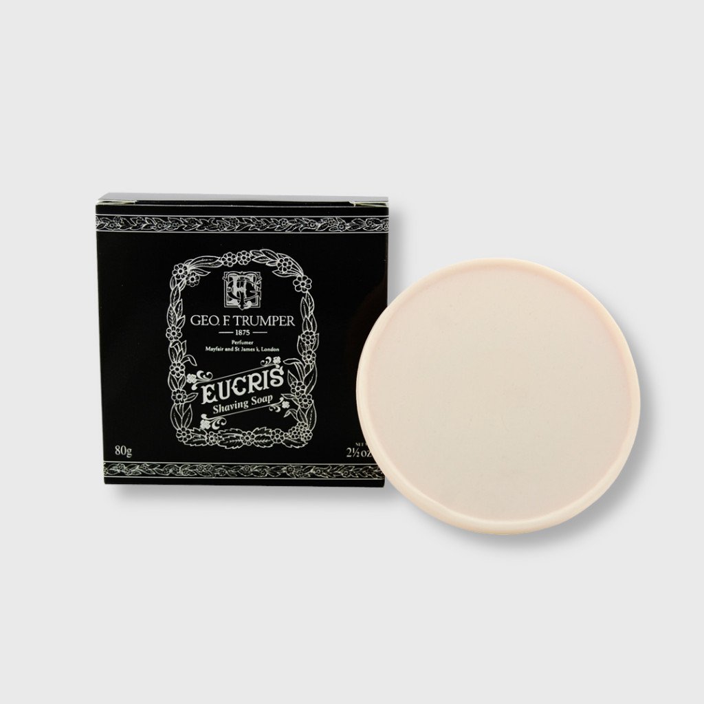 Kvalitné glycerínové mydlo na holenie od spoločnosti Geo. F. Trumper s vôňou Eucris. Eucris je nadčasová, veľmi elegantná vôňa, ktorá sa vyrába od roku 1912. Táto mužná kvetinovo-ovocná zmes sa skladá zo santalového dreva, pižma, rasce, jazmínu a čiernych ríbezlí. Pre milovníkov britského štýlu a elegancie.