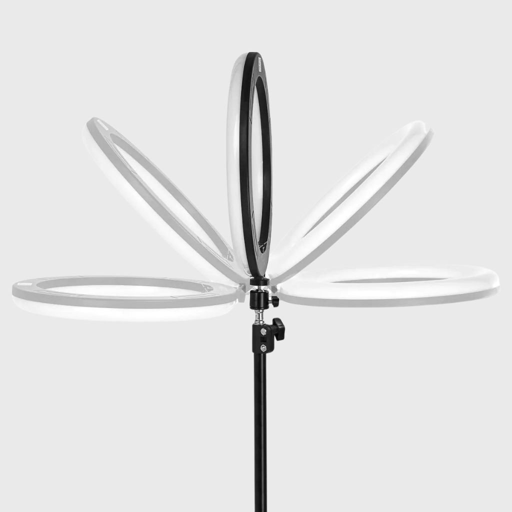 - Praktický dizajn: kompaktný a ľahký dizajn s priemerom prstenca 33 cm a teleskopickým statívom nastaviteľným v rozsahu 40 až 160 cm zaručuje pohodlné a stabilné umiestnenie.