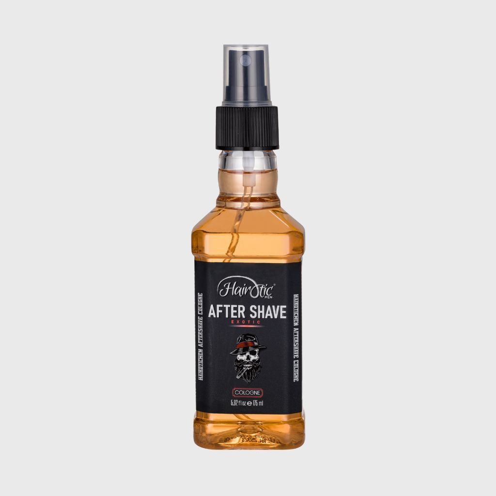 Hairotic Exotic After Shave Cologne kolínska voda v balení 175 ml, chráni pokožku pred podráždením a začervenaním, pomáha ju upokojiť a osviežiť. Osviežujúca vôňa vám dodá pocit čistoty a potešenie z holenia. Vďaka vysokému obsahu parfumu vydrží tento výrobok veľmi dlho. Obsiahnutý alkohol dezinfikuje a upokojuje pokožku po holení.