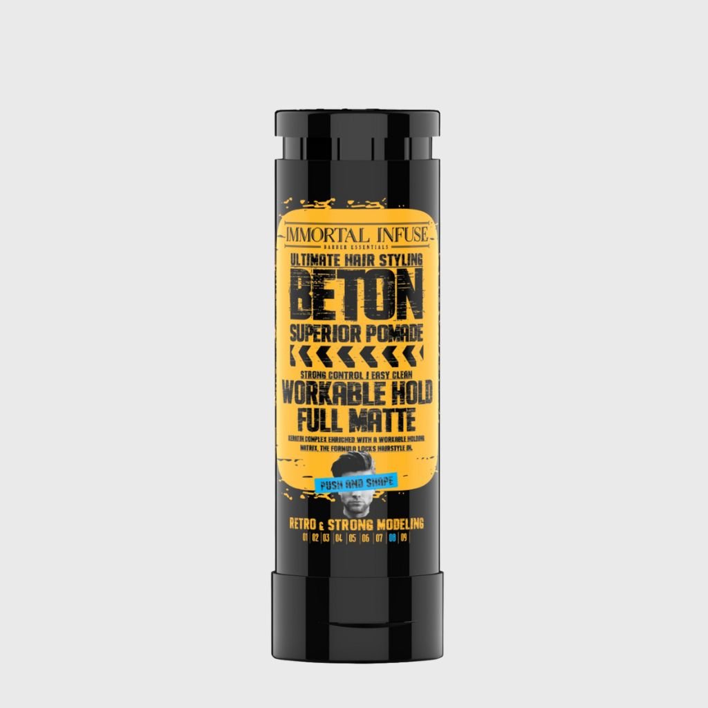 Immortal Concrete Superior Pomade je silná fixačná pomáda na vlasy s matným efektom. Obohatený o keratínový komplex a s tvarovateľnou fixáciou, ktorá umožňuje úpravu účesu počas dňa. Dodáva vlasom plný matný vzhľad a je ideálnym produktom pre retro účesy alebo účesy, ktoré vyžadujú maximálnu fixáciu.