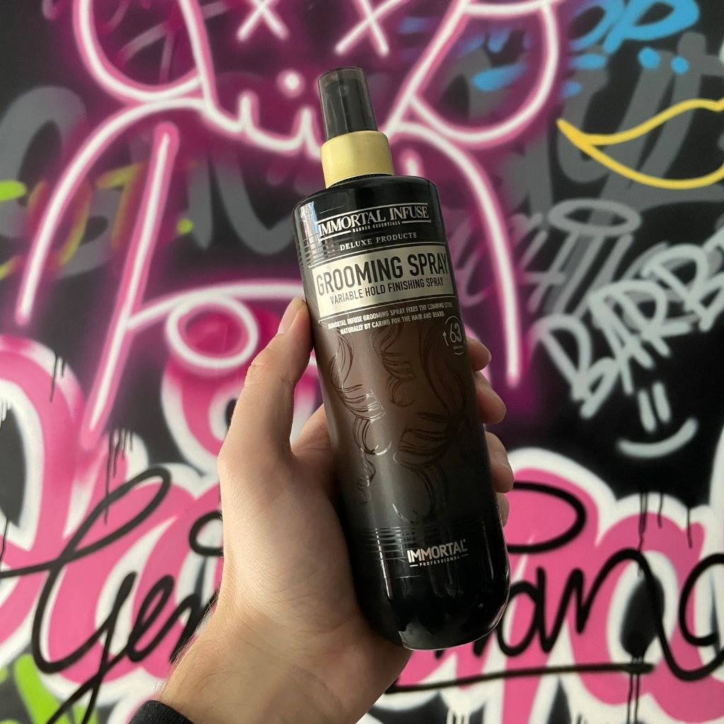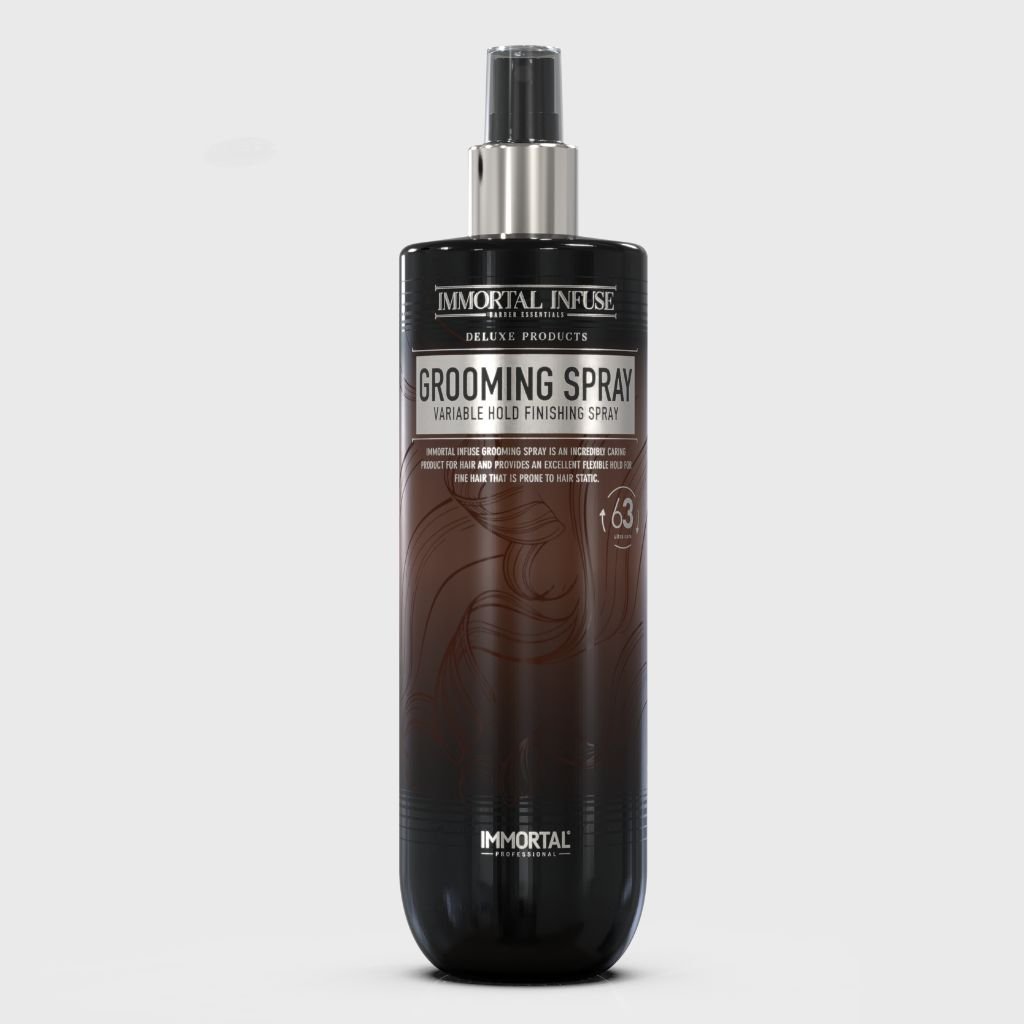 Immortal Infuse Grooming Spray je stylingový sprej na vlasy a bradu. Vďaka výťažkom z listov aloe vera, prasličky, žihľavy, plodov kokosu, hrušky a koreňa ženšenu vyživuje a ošetruje vlasy a bradu. Perfektne dopĺňa penu na starostlivosť Immortal Infuse Grooming Mousse.