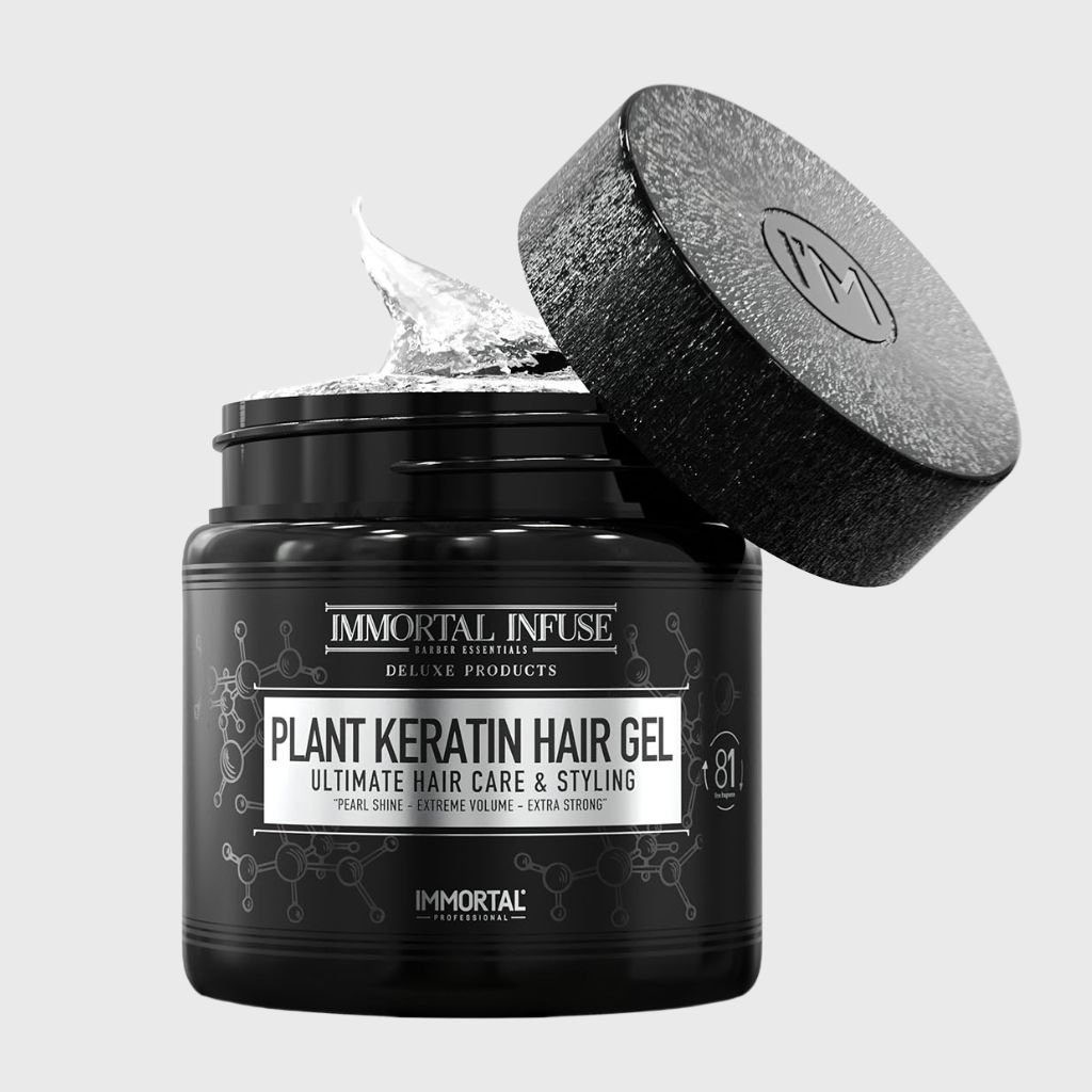 Extra silný gél na vlasy s keratínom Immortal Infuse Plant Keratin Hair Gel vytvára dlhotrvajúce účesy. Nezanecháva na vlasoch zvyšky. Vďaka špeciálnym zložkám vo svojom obsahu ošetruje vlasy tým, že chráni ich prirodzenú štruktúru.