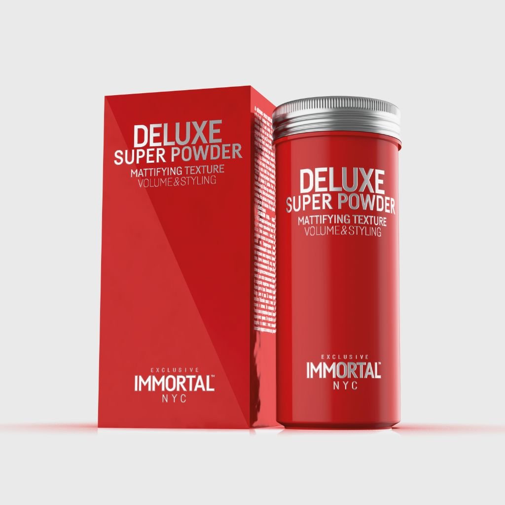 Immortal Deluxe Super Mattifying Texture je matný, ľahko držiaci púder na vlasy, ktorý dodáva objem a zároveň poskytuje prirodzený styling.
