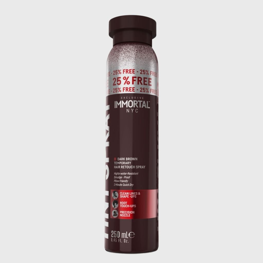 Immortal NYC Tint Spray Dark Brown poskytuje estetický vzhľad vyplnením šedín a riedkych oblastí vo vlasoch. Rýchlo schne, poskytuje dlhotrvajúce krytie, nesteká a nezanecháva zvyšky na oblečení. Je vhodný pre všetky typy vlasov a ľahko sa vymýva šampónom.