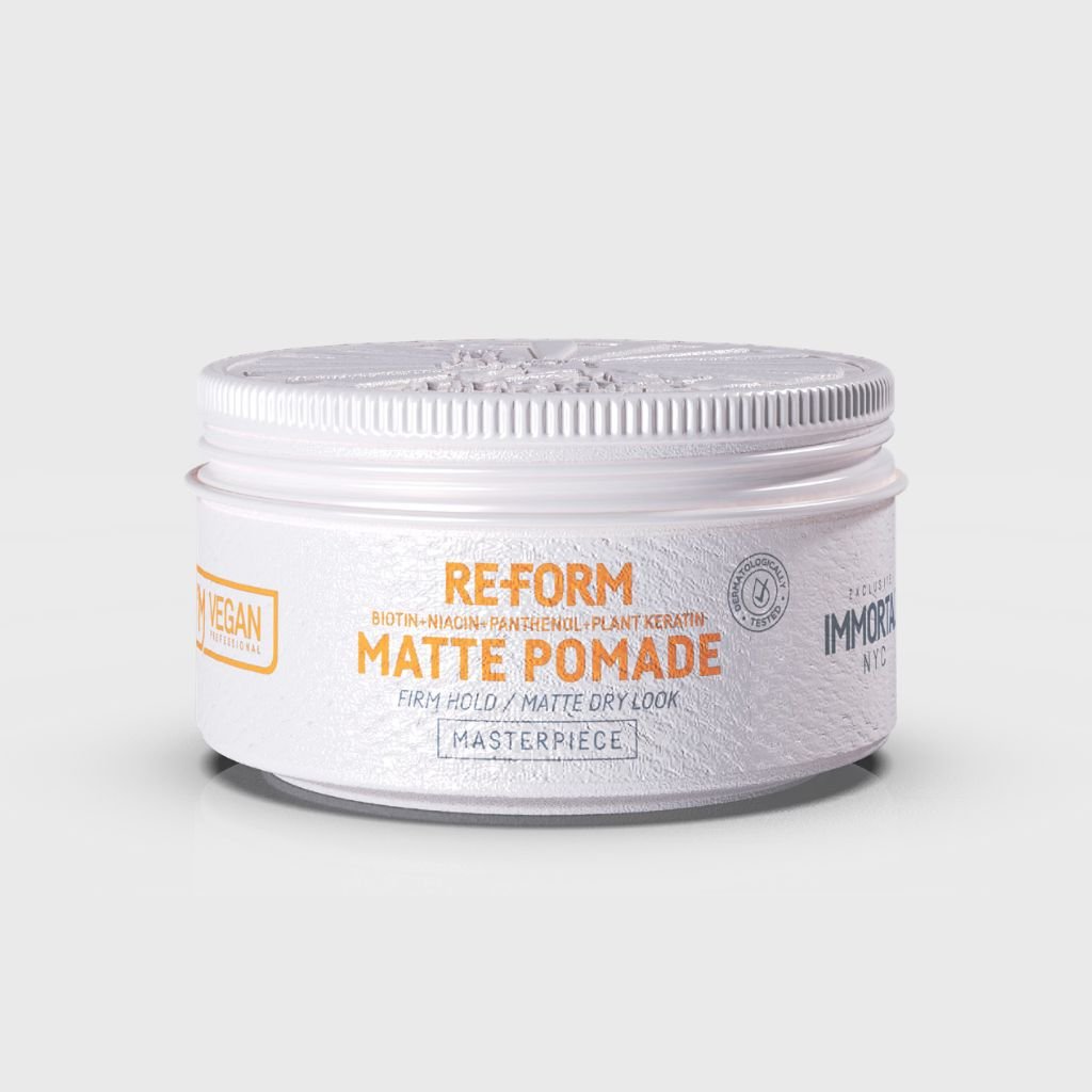 Predstavujeme vám Immortal VEGAN Re-Form Matte Pomade, matnú pomádu na vlasy, ktorá je skutočným majstrovským dielom vo svete stylingu. Táto pomáda je vytvorená z prírodných zložiek vrátane biotínu, niacínu, panthenolu a rastlinného keratínu, ktoré poskytujú nielen výnimočnú starostlivosť a obnovu vlasov, ale aj matný, suchý a prirodzený vzhľad.