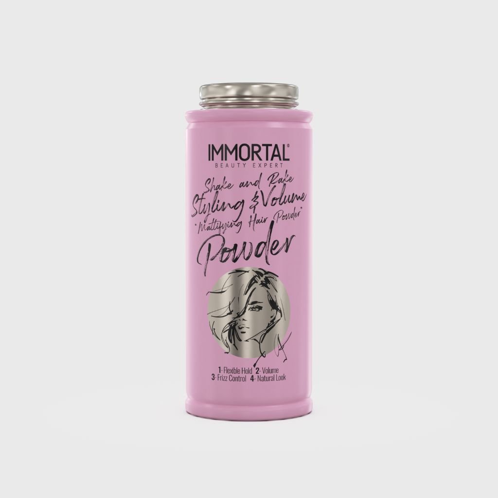 Immortal Volume & Styling Powder je matný, ľahko držiaci púder na vlasy, ktorý dodáva objem a zároveň poskytuje prirodzený styling.