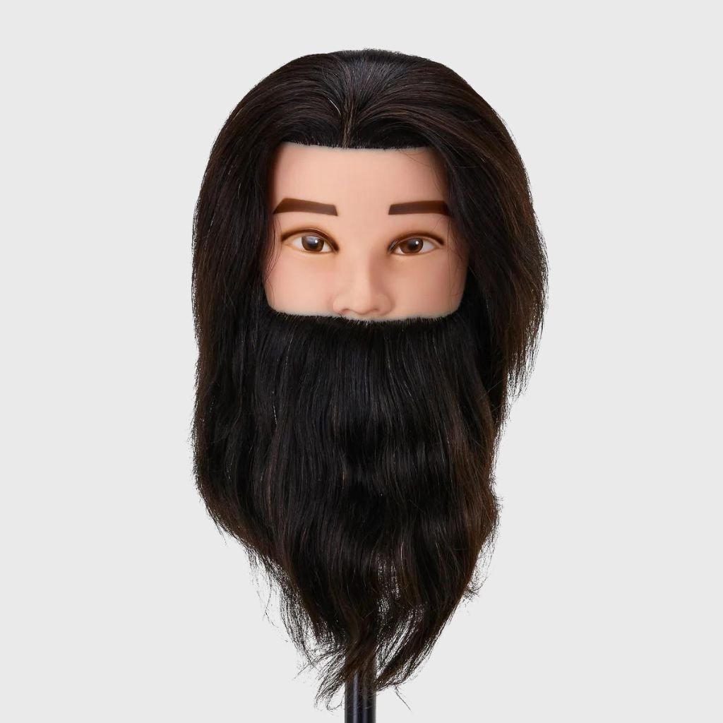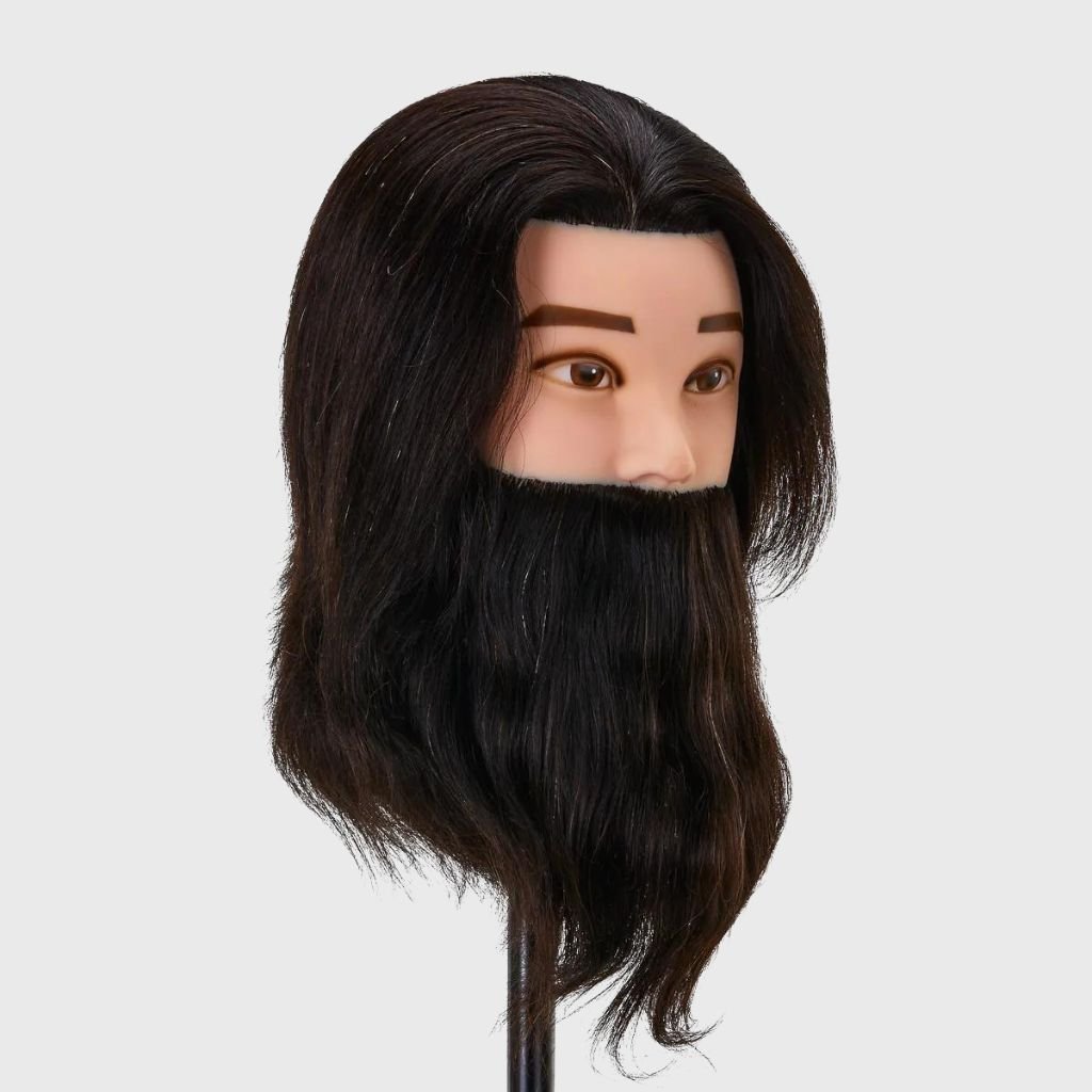 Profesionálna kadernícka tréningová hlava s bradou TH03 je revolučný nástroj na školenie a zdokonaľovanie kaderníckych zručností. Vlasy TH03 sú vyrobené z kvalitných prírodných vlasov v čiernom odtieni a poskytujú realistický zážitok pri nácviku rôznych úprav, strihov a štýlov. Vďaka svojej mierne zvlnenej štruktúre a optimálnej hustote vlákien simuluje správanie skutočných ľudských vlasov, čo umožňuje pokročilé techniky vrátane zložitých účesov, farbenia a odfarbovania.