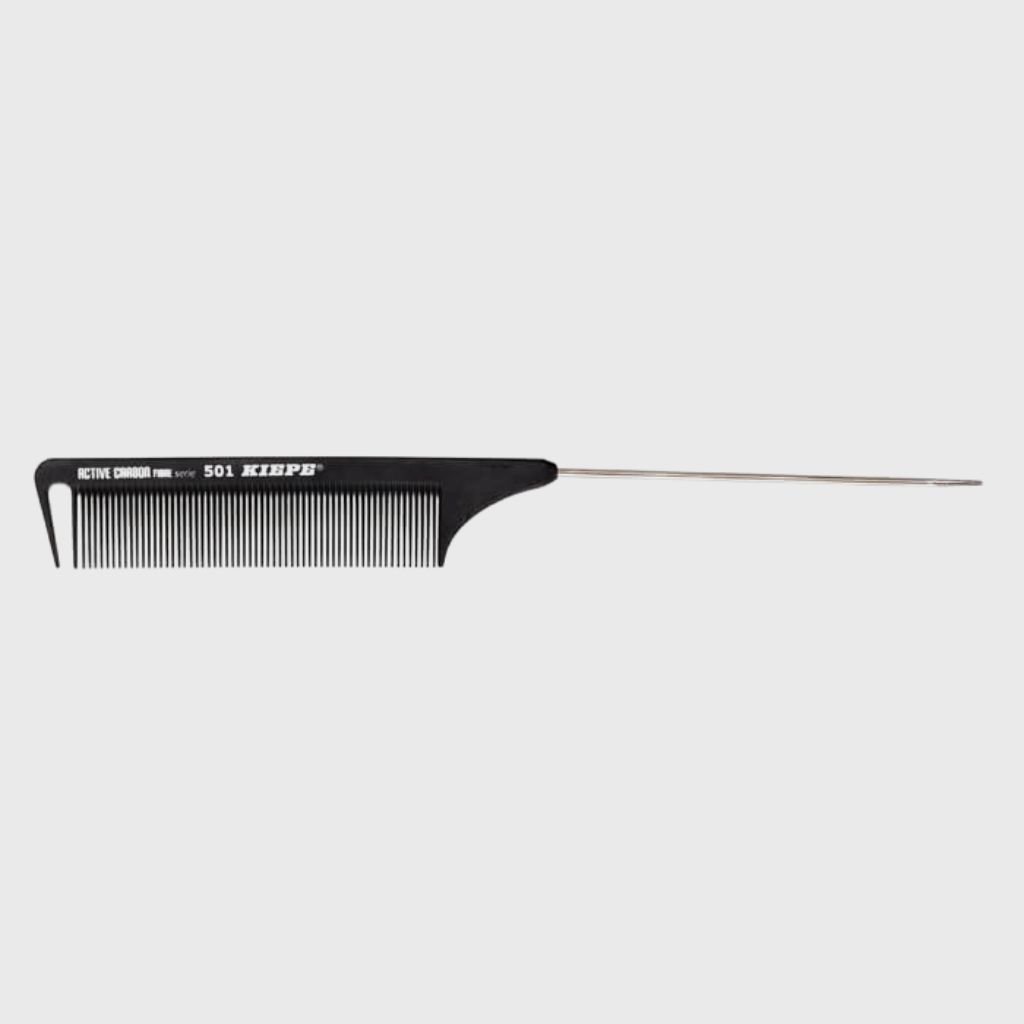 Hrebeň na vlasy Kiepe Active Carbon Series 501 je vyvinutý na profesionálne použitie. Antistatický a antibakteriálny, odolný voči teplotám do 230 °C a chemikáliám. Zaoblené zuby zabezpečujú jemnejší a šetrnejší kontakt s vlasmi a pokožkou hlavy. Počas používania sa uvoľňujú záporné ióny. Špeciálna prírodná rukoväť "Soft Touch".