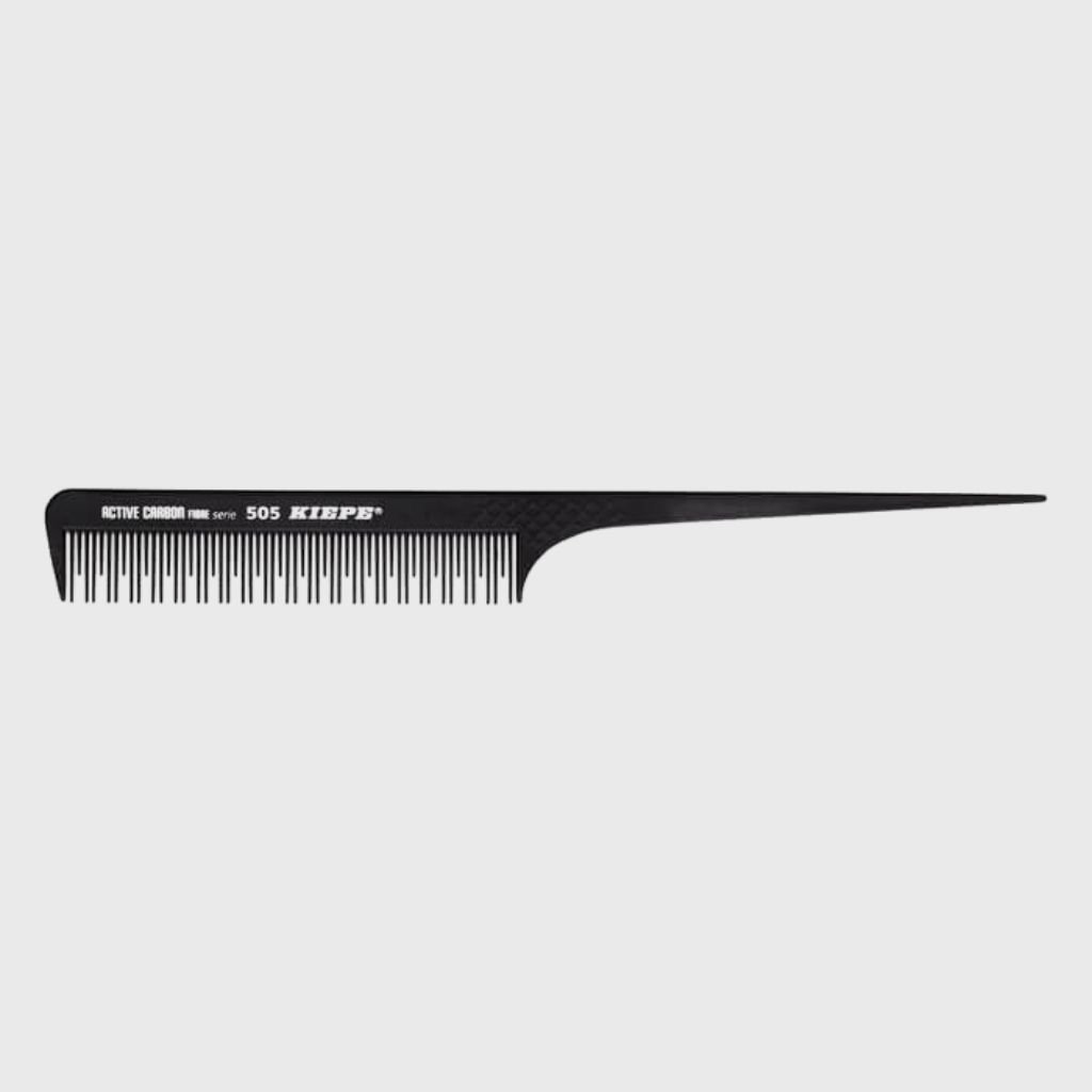 Hrebeň na vlasy Kiepe Active Carbon Series 505 je vyvinutý na profesionálne použitie. Antistatický a antibakteriálny, odolný voči teplotám do 230 °C a chemikáliám. Zaoblené zuby zabezpečujú jemnejší a šetrnejší kontakt s vlasmi a pokožkou hlavy. Počas používania sa uvoľňujú záporné ióny. Špeciálna prírodná rukoväť "Soft Touch".