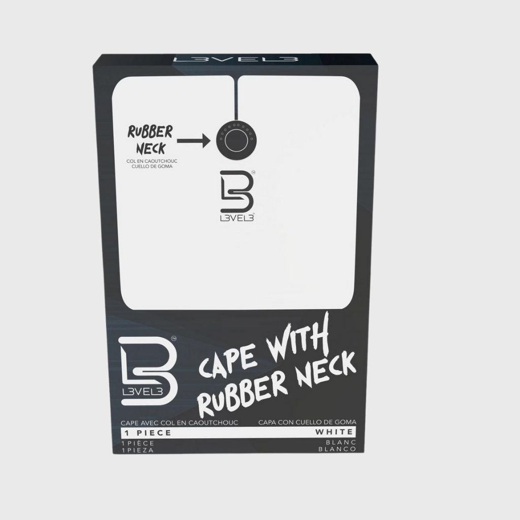 Profesionálna holičská pláštenka L3VEL3 je k dispozícii v čiernej a bielej farbe, aby ladila s atmosférou vášho salónu. Gumený krk a nepremokavá a chemicky odolná tkanina sú dokonalou ochranou pred podráždenou pokožkou a zašpineným oblečením. Táto pláštenka je taká inovatívna a praktická, že ju budete používať každý deň pri strihaní, farbení, bielení a všetkých ostatných činnostiach.