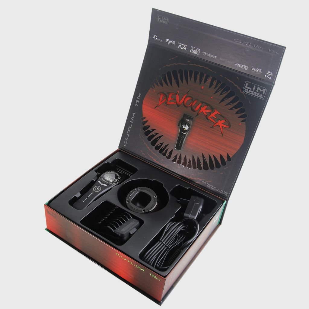 Profesionálny, maximálne výkonný strihací strojček na vlasy LIM HAIR CUTLIM 15k DEVOURER (Požierač). Je to technologicky najvyspelejšie zariadenie na trhu. Typ motora VECTOR je evolúciou dobre známeho magnetického motora s elektronickým riadiacim systémom ATA TORQUE, takže pri zvýšení rezného zaťaženia sa zvýši výkon, čím sa zvýši rýchlosť rezania z 11 000 ot/min na 15 000 ot/min.