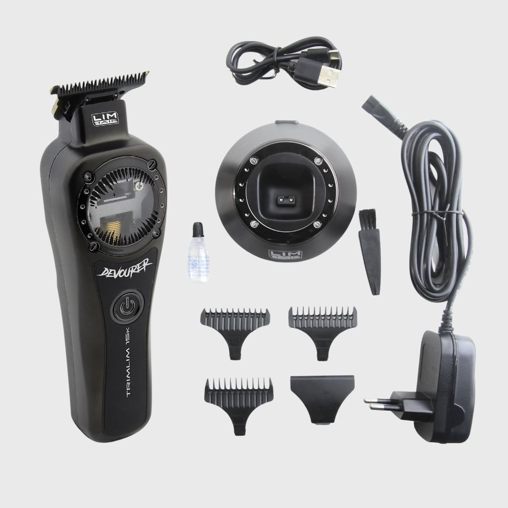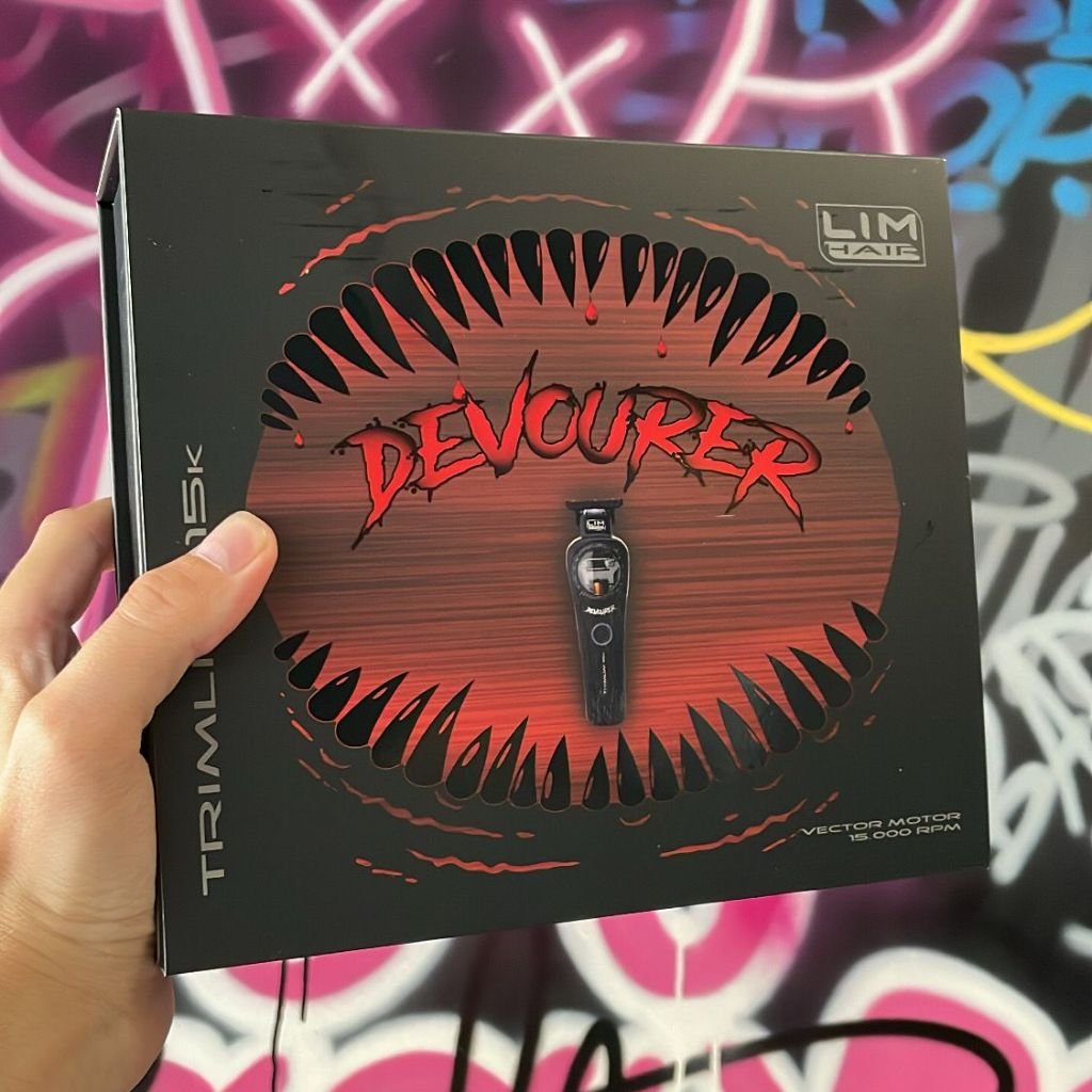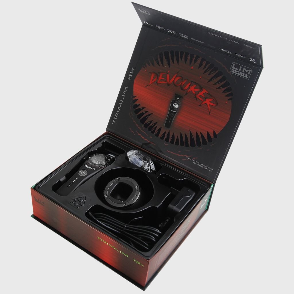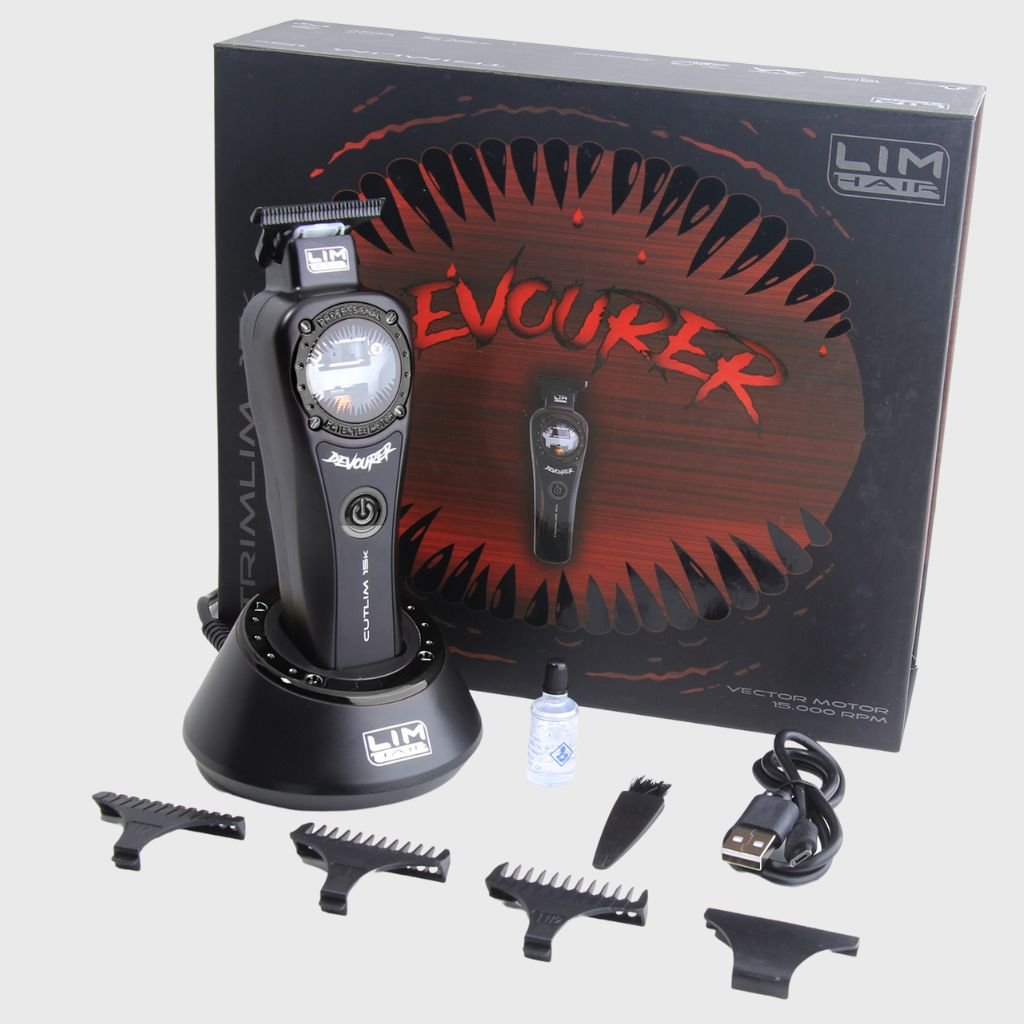 Profesionálny, maximálne výkonný kontúrovací strojček na vlasy LIM HAIR TRIMLIM 15k DEVOURER (Požierač). Je to technologicky najvyspelejšie zariadenie na trhu. Typ motora VECTOR je evolúciou dobre známeho magnetického motora s elektronickým riadiacim systémom ATA TORQUE, takže pri zvýšení rezného zaťaženia sa zvýši výkon, čím sa zvýši rýchlosť rezania z 11 000 ot/min na 15 000 ot/min.