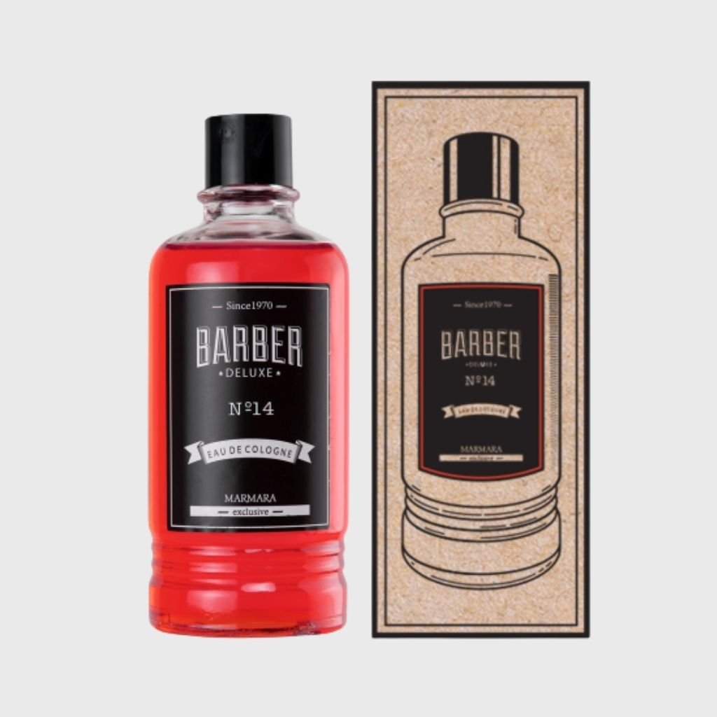 Kolínska voda Marmara Barber Deluxe No. 14 so sviežou citrusovou vôňou s tónmi pomaranča a grapefruitu na drevitom základe. Vďaka vysokému obsahu alkoholu je ideálny aj ako voda po holení. Dodáva sa v krabici, vo veľkom balení (400 ml), ktoré je ideálne pre kaderníctva.