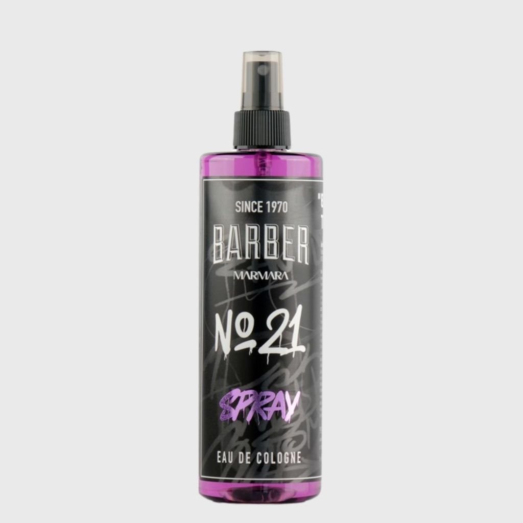 MARMARA Barber Graffiti No. 21 kolínska voda v spreji vo väčšom balení (400 ml) vhodná na dlhodobé používanie v domácnosti alebo na profesionálnu starostlivosť v holičstvách či kaderníctvach. Balenie obsahuje fľašu s rozprašovačom na jednoduché a rýchle použitie.
