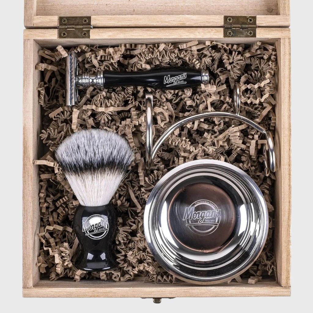 Štýlová drevená darčeková kazeta plná nástrojov na holenie tej najvyššej kvality z dielne anglickej legendy Morgan's.