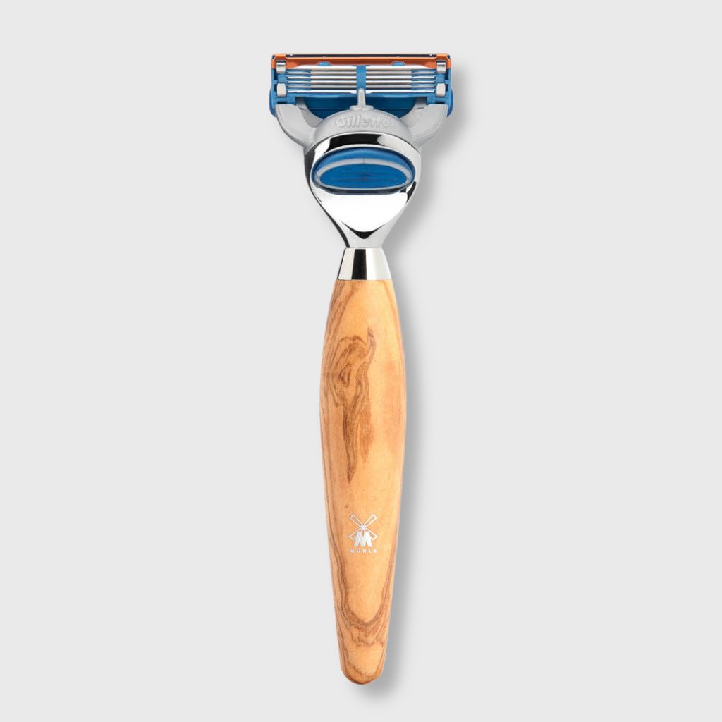 Kvalitný holiaci strojček Mühle v nadčasovom dizajne na hlavice Gillette Fusion. Sortiment Kosmo Olive sa vyznačuje ručne vyrobenými materiálmi prvotriednej kvality. Rukoväť holiaceho strojčeka je vyrobená z čistého olivového dreva, ktoré zaručuje dlhú životnosť, vysokú odolnosť a jednoduchú údržbu. Kovové časti sú vyrobené z mosadze a sú galvanicky pochrómované.