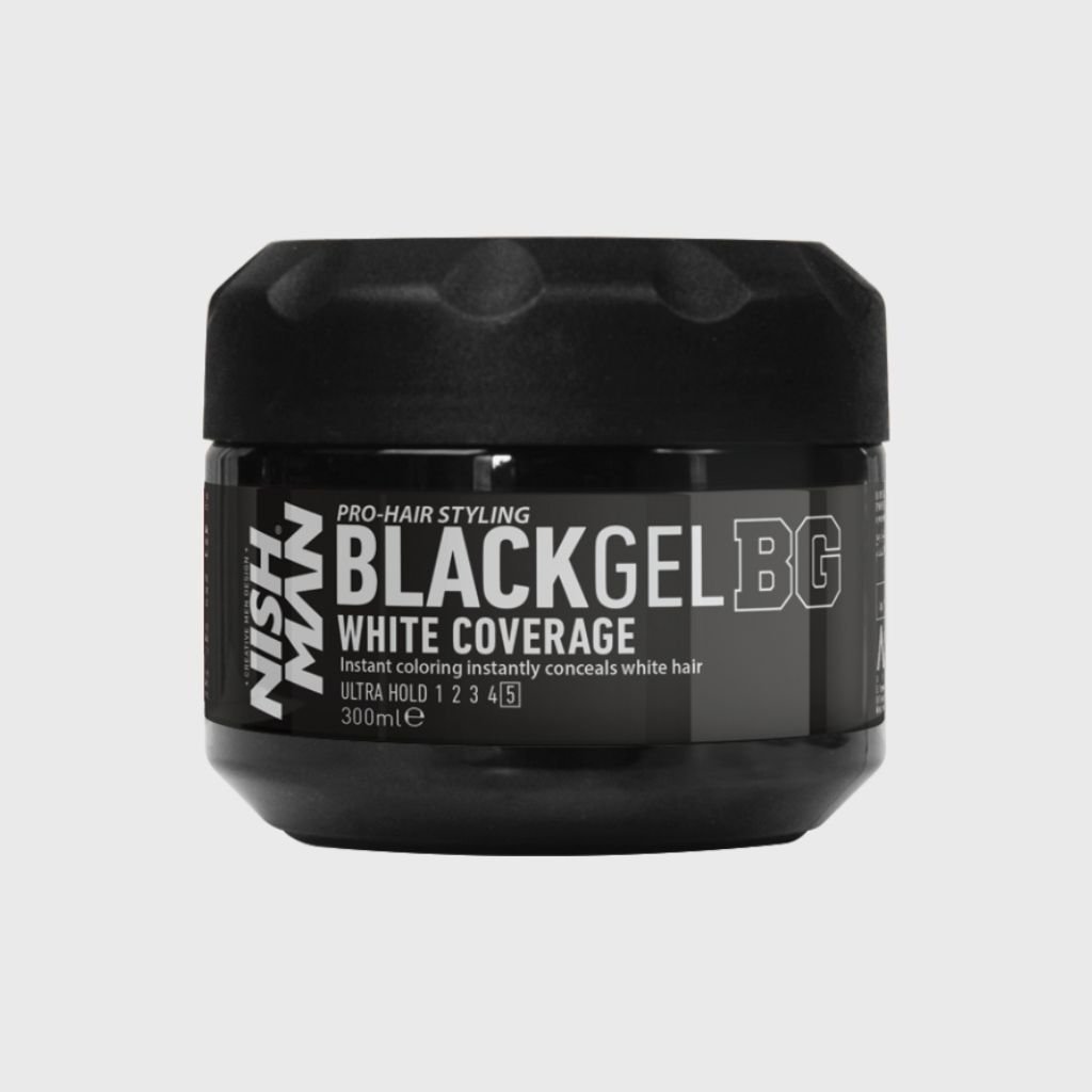 NISHMAN Black Gel White Coverage je čierny gél na vlasy pre okamžité krytie šedín a úpravu vlasov. Okamžite zakryte šedivé vlasy, dodajte im objem, textúru a silnú fixáciu s čiernym stylingovým gélom NISHMAN. Jedinečné zloženie dodáva dlhotrvajúci lesk a objem, ktorý sa ľahko zmýva. Čierny farebný odtieň je dočasný a môže sa používať príležitostne alebo denne. Kvalitné ingrediencie umožňujú dosiahnuť účes bez šupiniek a s osviežujúcou vôňou.