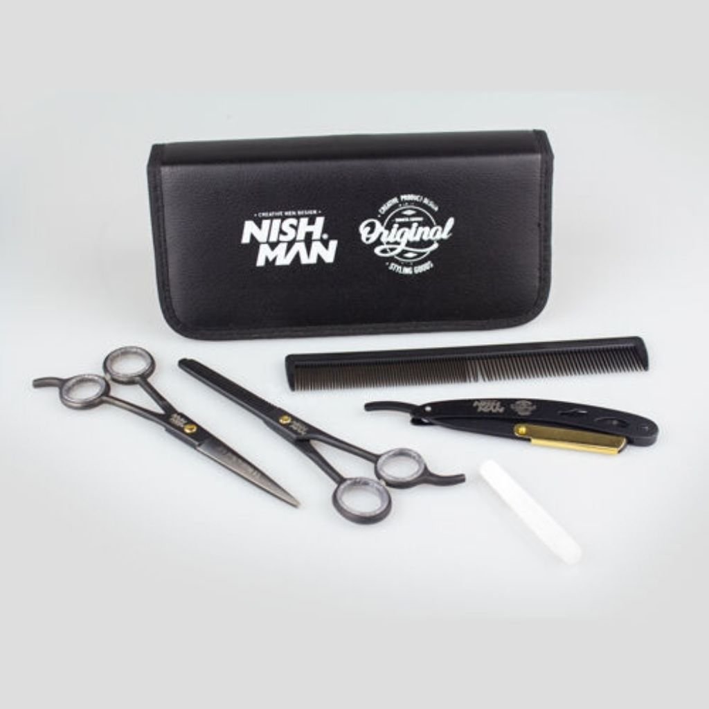 Nish Man Scissors Set sada nožníc, shavetty a hrebeňa pre barbery