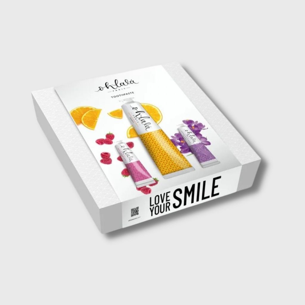 Ohlalá Sada zubných pást - Pomarančová, Malinová & Fialková, 1x75ml + 2x15ml