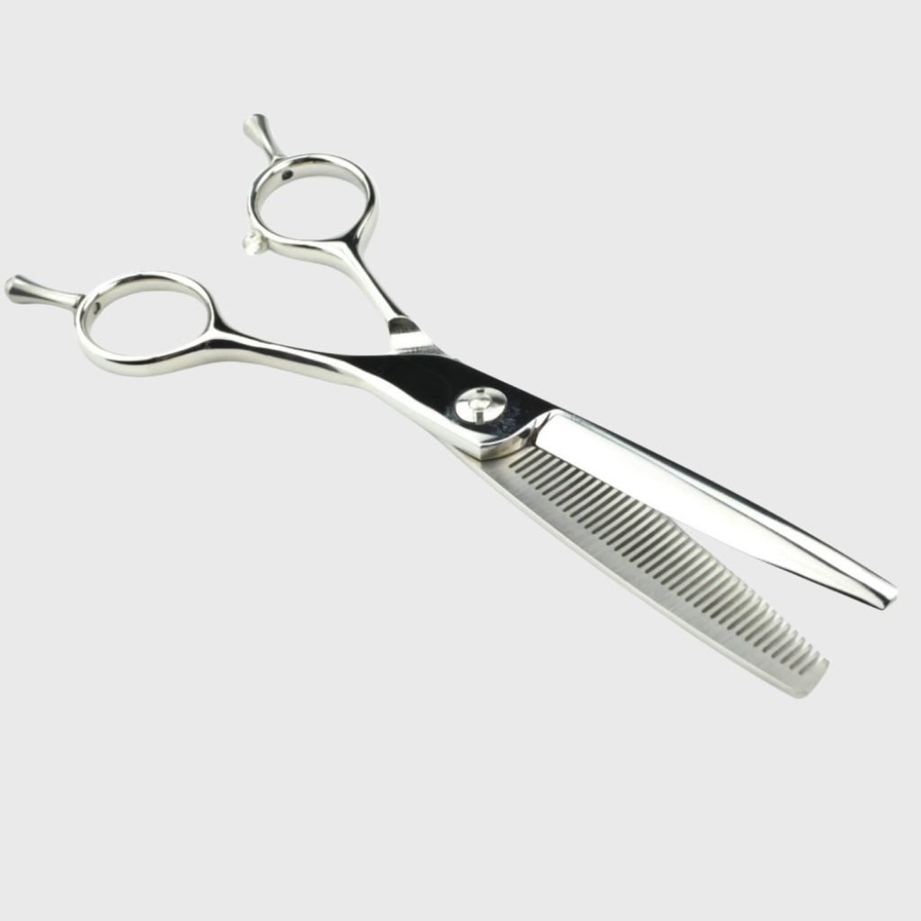 Kvalitné jednostranné efilačné nožnice Osaka JK v dĺžke 6 palcov as 38 tenkými zubami sú vyrobené z nerezovej ocele Hitachi 440C. Zuby sú rovné na efektívne textúrovanie vlasov. Znižujú počet chĺpkov približne o 25-30 %. Plochá nastavovacia skrutka umožňuje nastaviť nožnice podľa vašich požiadaviek.