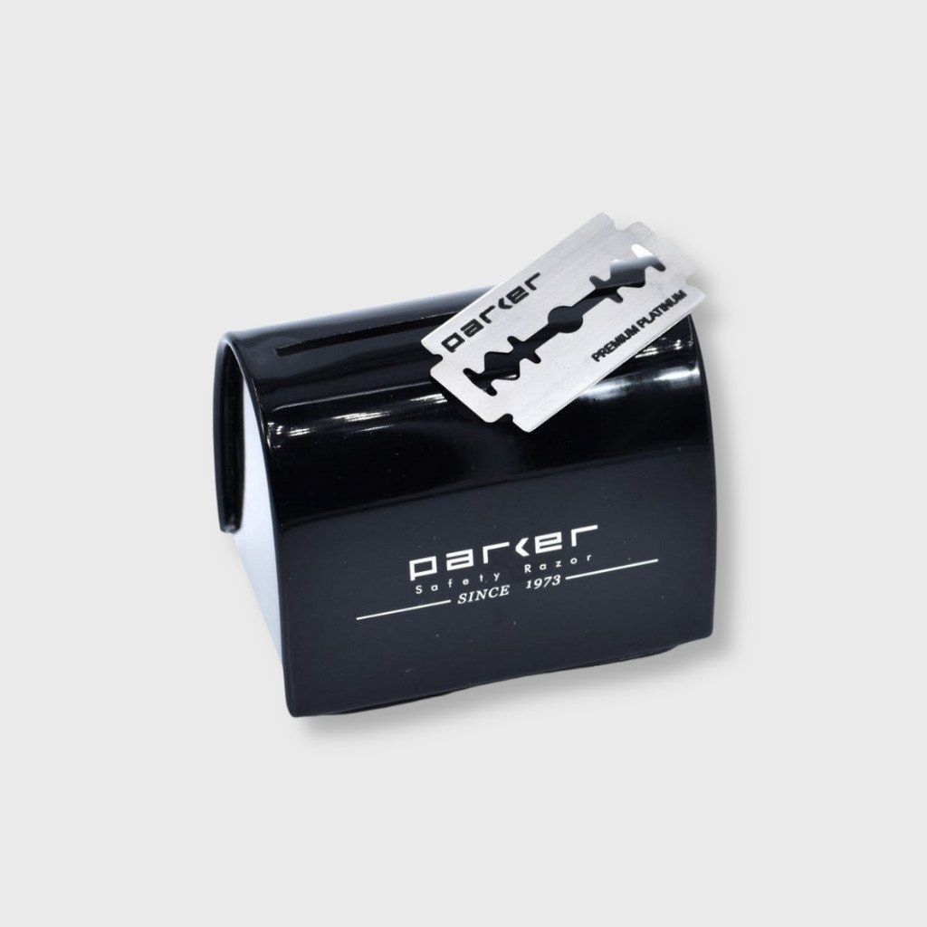 Plechový box Parker na bezpečné uloženie použitých žiletiek.