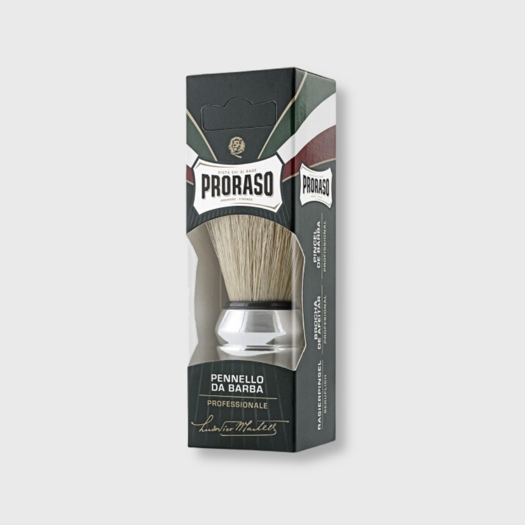 Štetka na holenie s diviačími štetinami od talianskej značky Proraso. Kefa má pochrómovanú plastovú rukoväť, ktorá je príjemná na dotyk, a o niečo dlhšie štetiny na ľahké šľahanie peny. Tvrdšie štetiny sú vynikajúce na odstraňovanie odumretej pokožky.
