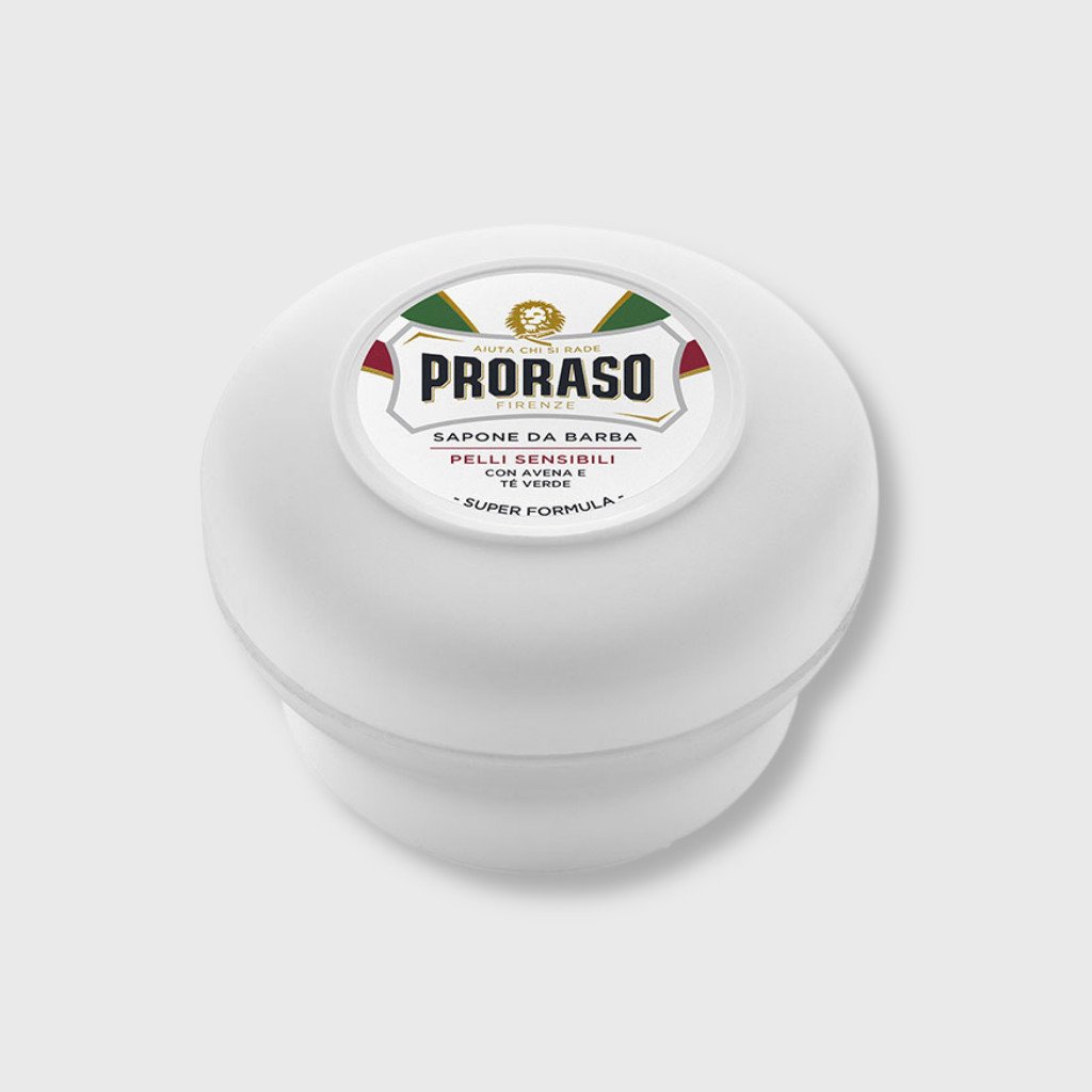 Mydlo na holenie Proraso Sensitive pre veľmi citlivú pokožku s výťažkami z aloe vera, ktoré upokojuje pokožku, a zo zeleného čaju, ktorý má antibakteriálne vlastnosti. S glycerínovým základom. Rýchlo zjemňuje fúzy a pripravuje pokožku na holenie. Pomocou štetky na holenie vytvorte hustú krémovú penu.