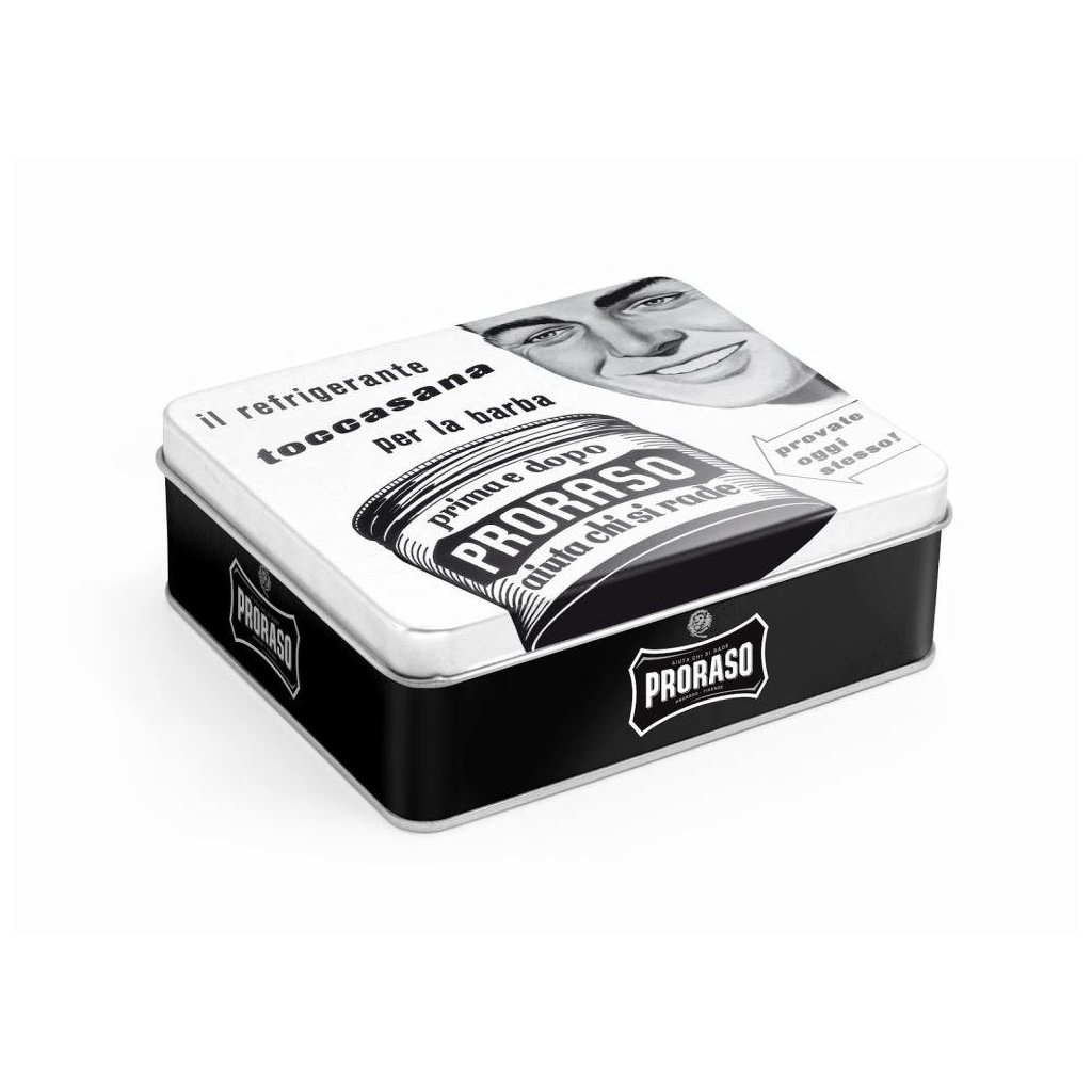 Darčeková sada troch základných produktov Sensitive pre veľmi citlivú pokožku s výťažkami z aloe vera a zeleného čaju od obľúbenej talianskej značky Proraso. Súprava je v kovovej darčekovej škatuli s rozmermi 21,5 x 23 x 7,7 cm.